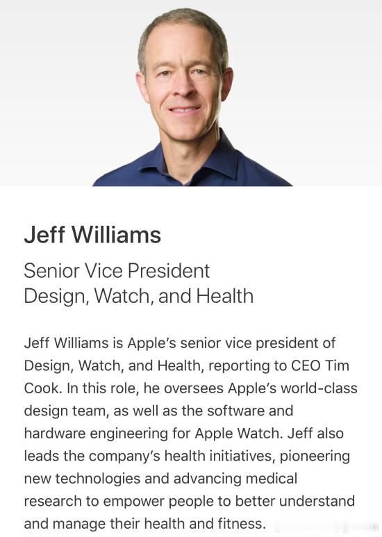 苹果公司二号人物离职今天,苹果前首席运营官(COO)杰夫・威廉姆斯(Jeff W