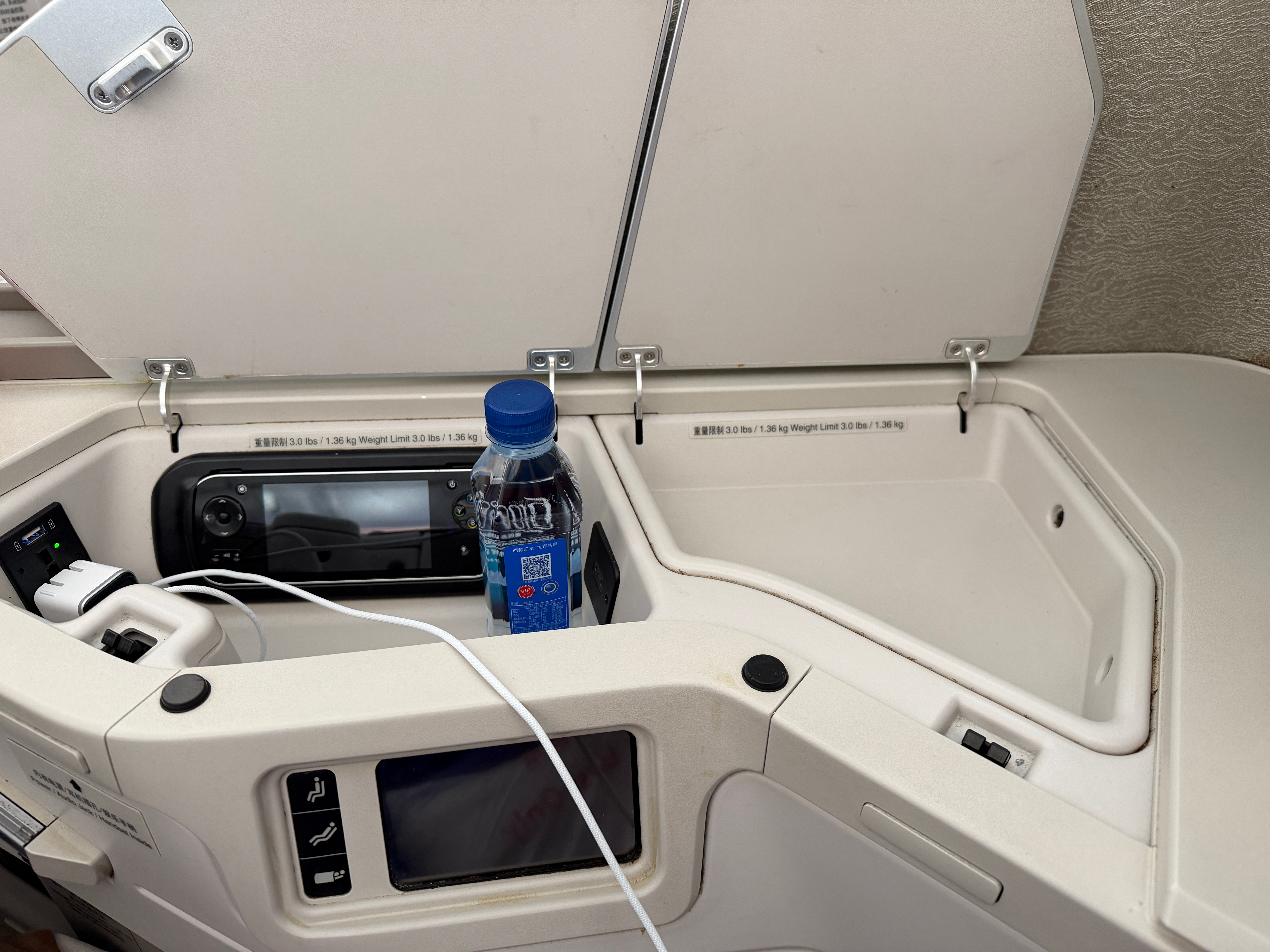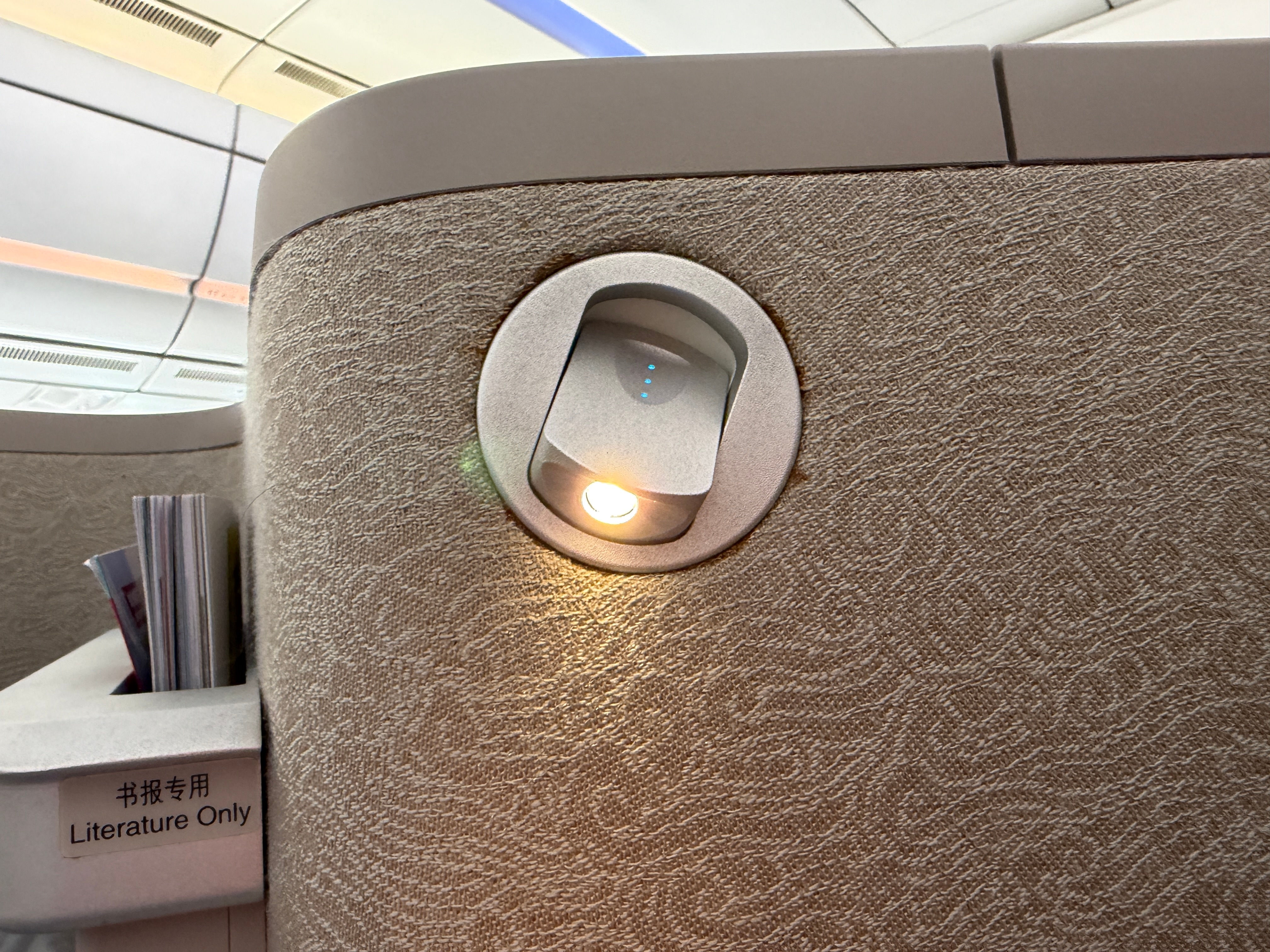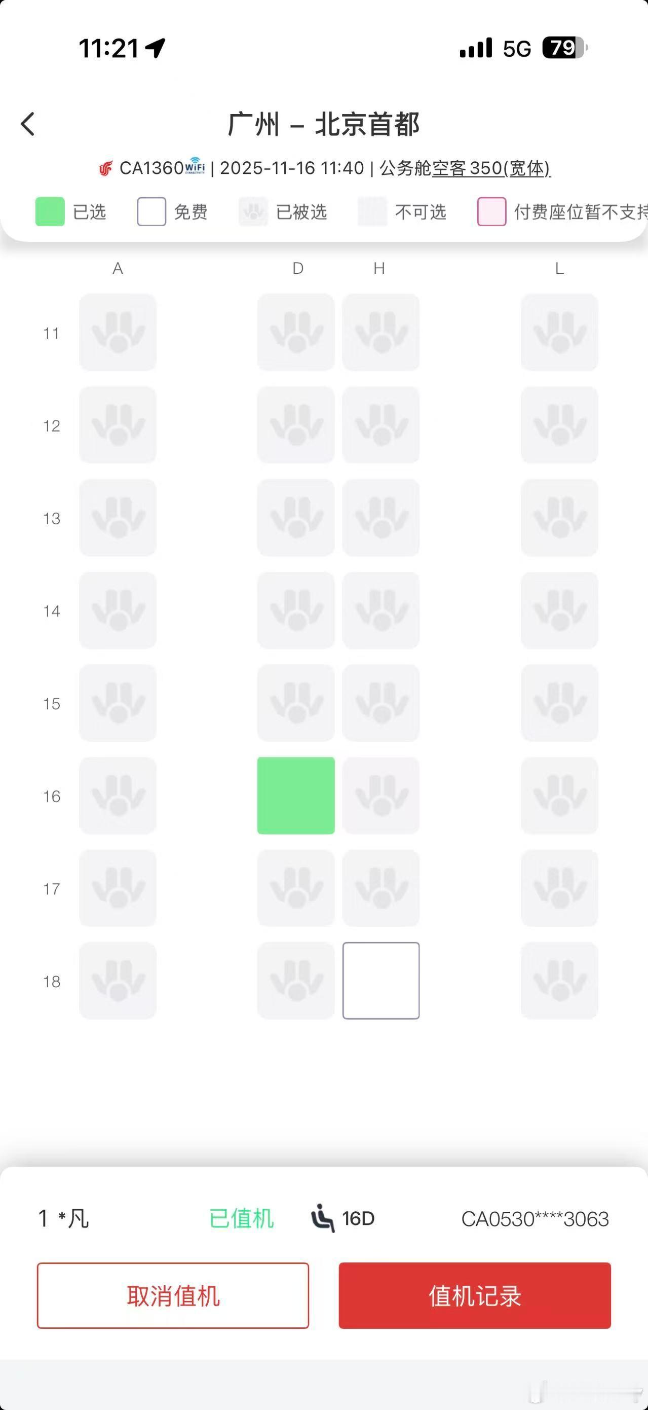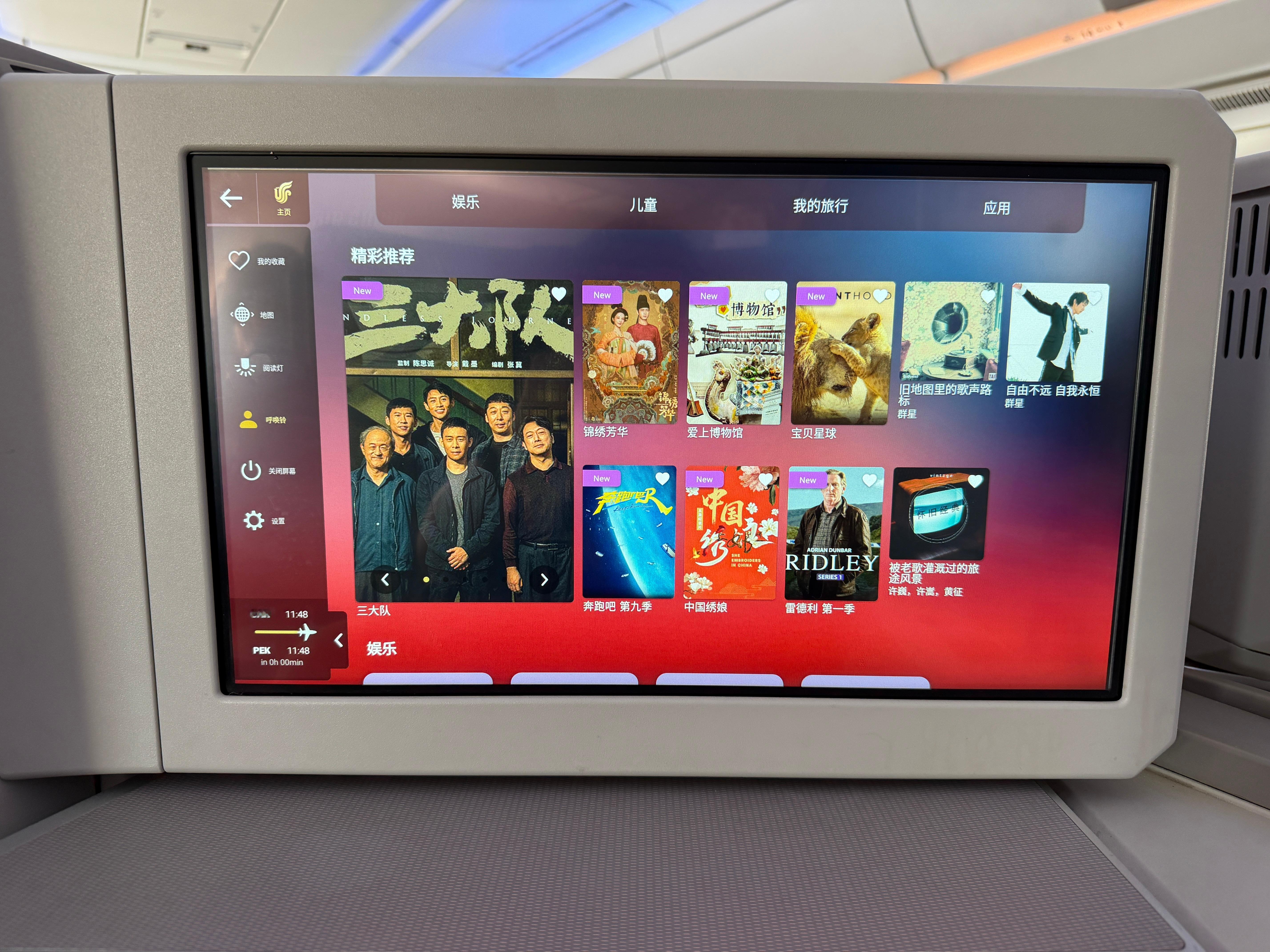 回北京备战广州车展下周再回来今天广州✈北京升舱 机型是空客350-941靠窗位置没了这个商务舱布局是121,靠窗位置是图2这种封闭型的特别舒服。但是中间两排就很尴尬,两个人中间没有围栏或者遮挡物,面面相觑对I人不友好不过挑高2米可以看天花板娱乐系统挺丰富,屏幕挺大,充电接口也都有,2个半小时的飞行可以躺着休息。今天的餐食有前菜三文鱼,正餐肥牛 米粉还有啥我忘了,饮品有日常的饮料,菊花普洱龙井也都能选!最重要的是这趟航班有WiFi 知识点要考:国航的350开头机型大概率都有WiFi 下课!