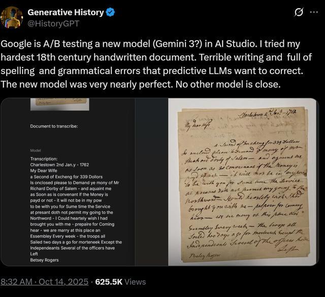历史学家MarkHumphries通过专门开发的基准数据集,对该模型展开系统性测试。在处理五份18至19世纪的高难度历史手稿时,模型整体字符错误率约为1.7%,且多数错误集中在标点符号和大小写规范上,未涉及单词本身的识别偏差。若剔除这类非核心错误,模型字符错误率将降至0.56%,相当于每转写200个字符仅出现1处失误,其准确度已能与专注历史文献转写的专业工作者相媲美。