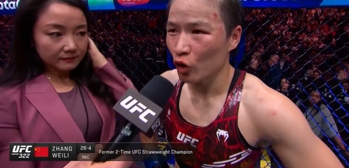 直播吧11月16日讯UFC女子世纪战,张伟丽升重不敌舍甫琴科,无缘夺蝇量级冠军。赛后张伟丽接受了采访。