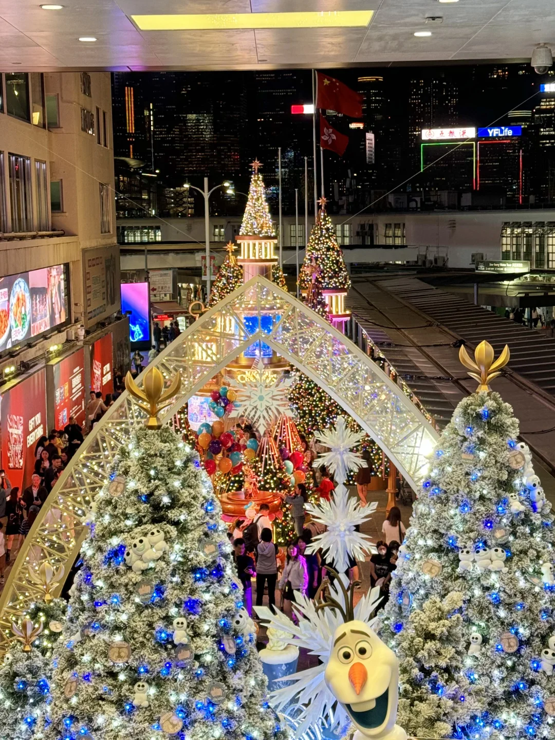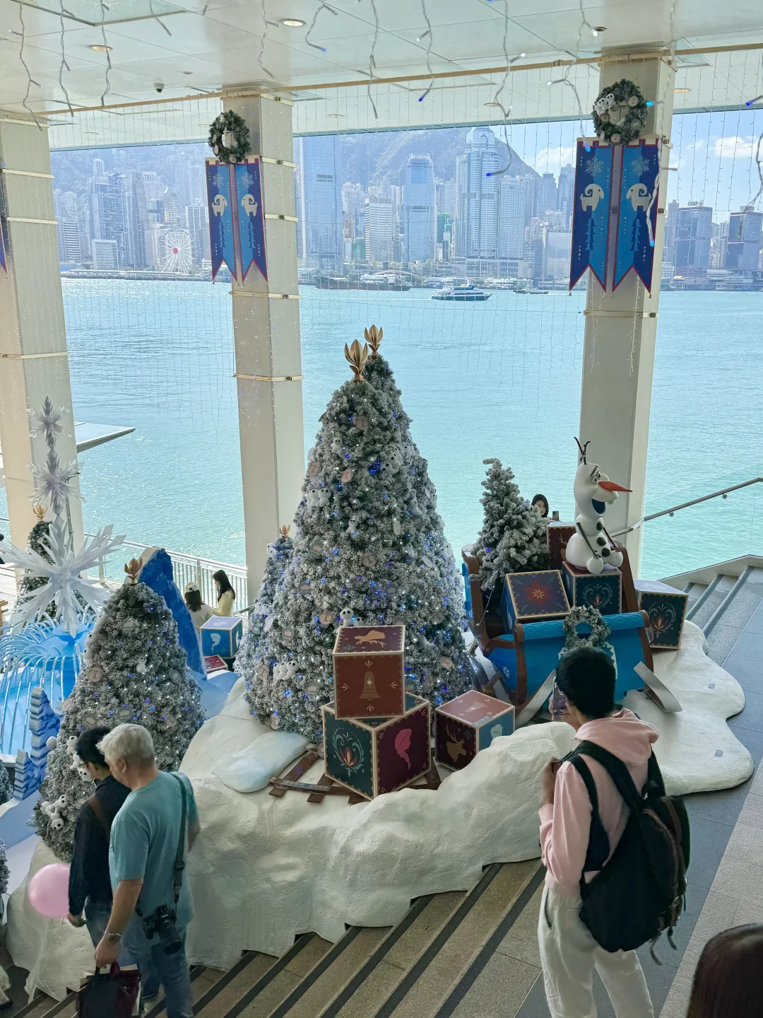 圣诞季当然要来香港啦 这里的圣诞氛围已拉满 这次是冰雪奇缘主题🎄也太好拍了 上午10点左右人不是很多,人少好拍 拍照时间📷11.14 港铁:尖东站L6 出口 📍:尖沙咀海港城大楼梯门口