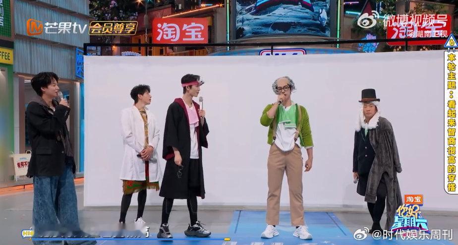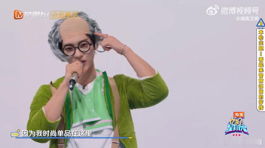 颜安带着他的抽象穿搭来了,紧身背带裤配秃顶头套,这“聪明绝顶”造型太独特。他一本