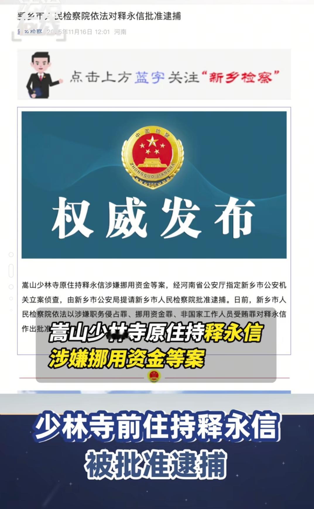 作恶者,必遭后报,2025年10月16日,河南新乡检察院批捕释永信! 开豪车,搂美女,坐拥千万豪宅,少林寺主持“了不得”,佛祖看到了都要竖大拇指。 曾几何时,释永信的名字代表了大众对佛教的认可,对少林寺的认可,但随着黑料一点点的扒出,他明面上的廉洁劳苦,却掩盖不了背地里的阴暗勾当,人设崩塌,到牢里渡余生,已成必然! 真讽刺,这就是所谓的高僧住持么,和尚富的流油,又叫什么和尚?! 吃的这么肥,那可都是一点一滴从老百姓的供奉里刮来的,可悲可叹!
