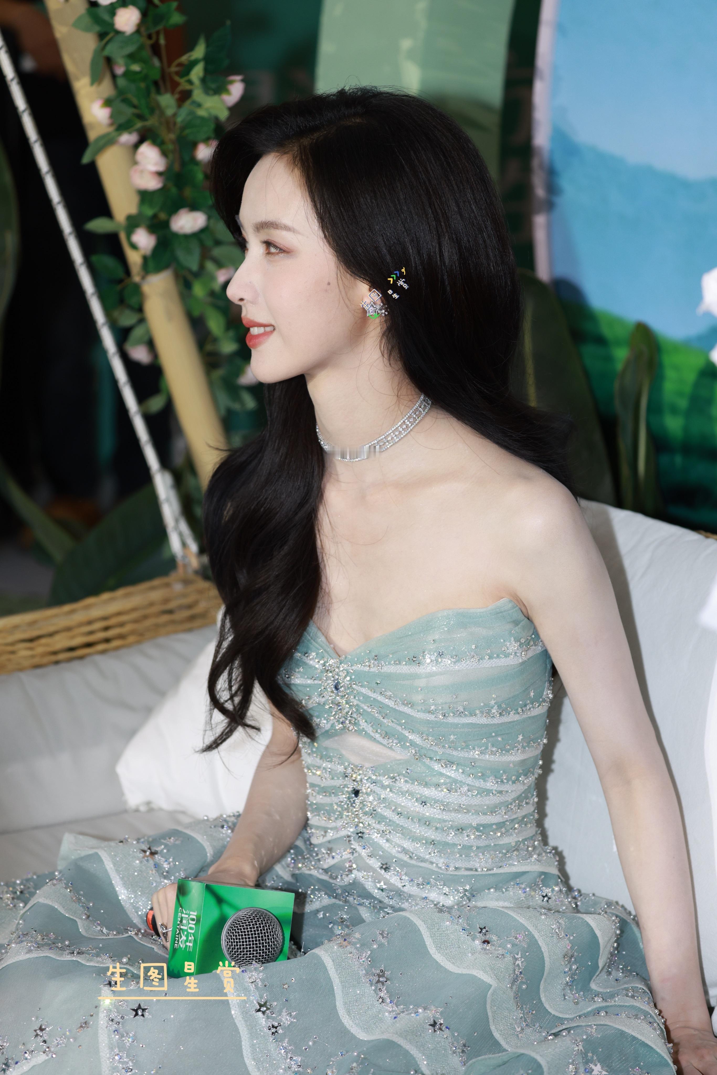 陈都灵金鸡奖第二套造型!太美了,像松树里的蓝色贝壳