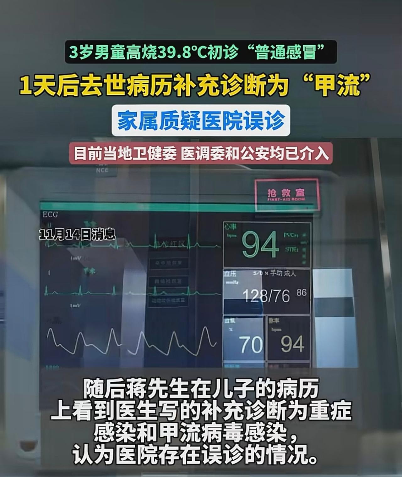 最近的流感可要重视起来,很可能是甲流。河南这位3岁孩子太可惜了,初诊是普通感冒,可是一夜过去越来越严重,送到医院已经晚了,最终确诊甲流。虽然没法断定到底是诊断有误,还是并且发展太快,但还是提醒不要当普通感冒对待。甲流流感 预防甲流
