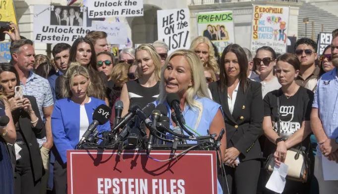 爱泼斯坦泄密事件引发的争吵,已经演变成一场公开的内讧,动摇了特朗普极右翼的基础。 众议院共和党人乔丽·泰勒,曾经是特朗普坚定的支持者和拥护者,现在则被特朗普斥责为"叛徒",特朗普在社交媒体平台上称她为"古怪的玛乔丽"后。特朗普果断抛弃这位昔日铁杆盟友,起因似乎是她呼吁公开所有关于已故恋童癖者杰弗里·爱泼斯坦的档案。 可怕的是,格林似乎正面临人身威胁。她声称,自己一直受到一些受雇的“激进的网络喷子”的威胁,并担心她的人身安全。一家私人安保公司已经就此对她发出警告。