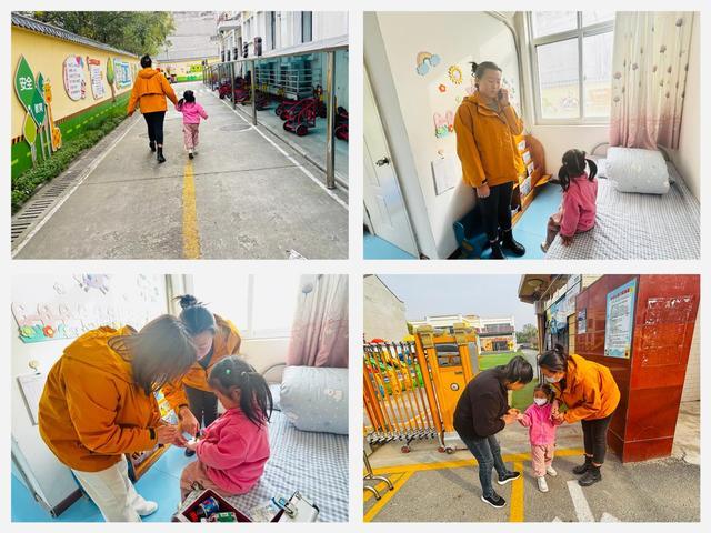 主班老师按指定路线将患儿送至隔离室,并同步联系保健医生到场处置,佩戴防护用品完成体温测量、症状核查,确认疑似病例特征后,即刻联系家长告知情况并建议就医。