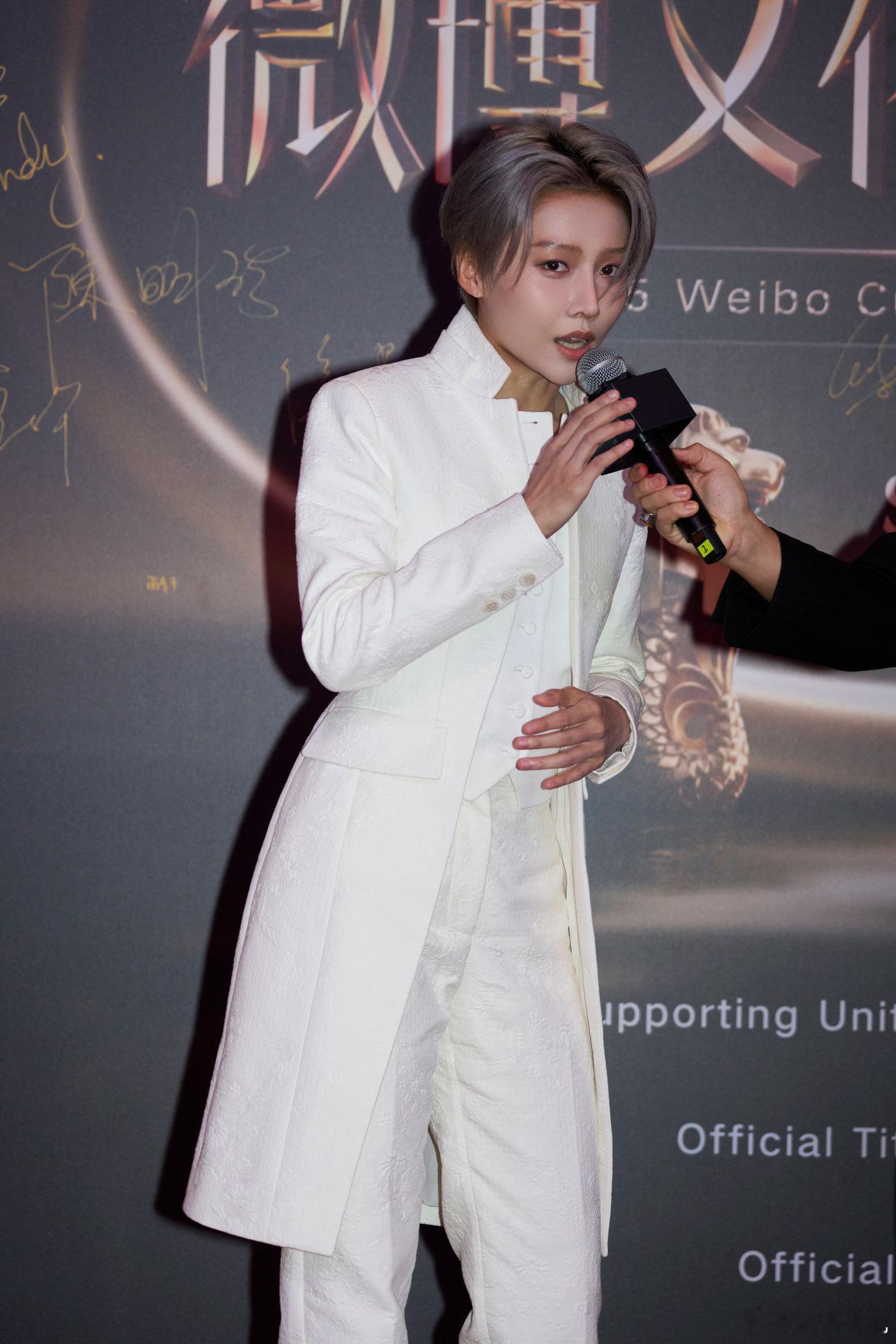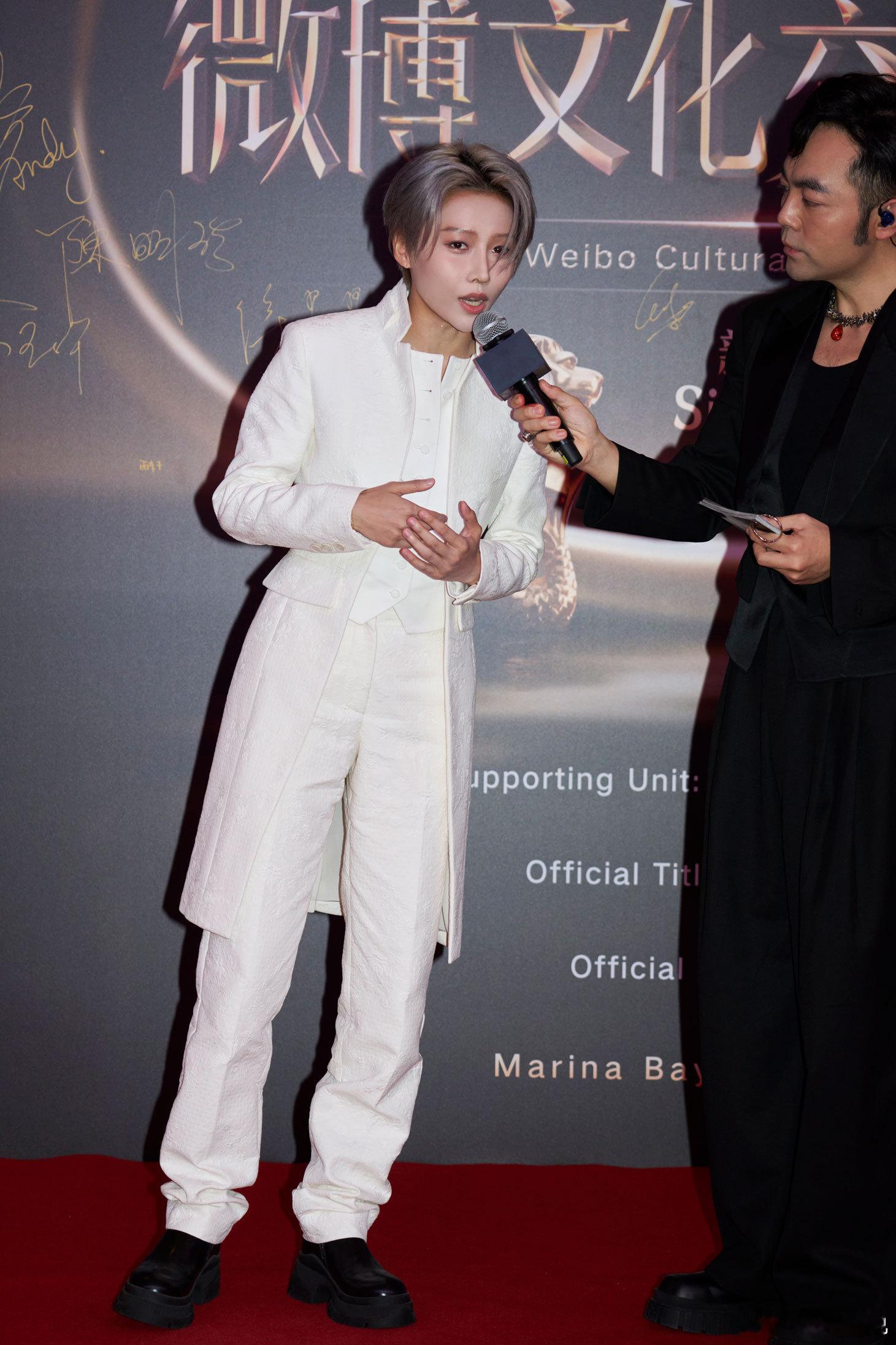 新加坡文化交流之夜的灯光下,刘雨昕的白色造型格外亮眼。长款外套衬出优雅身姿,每一