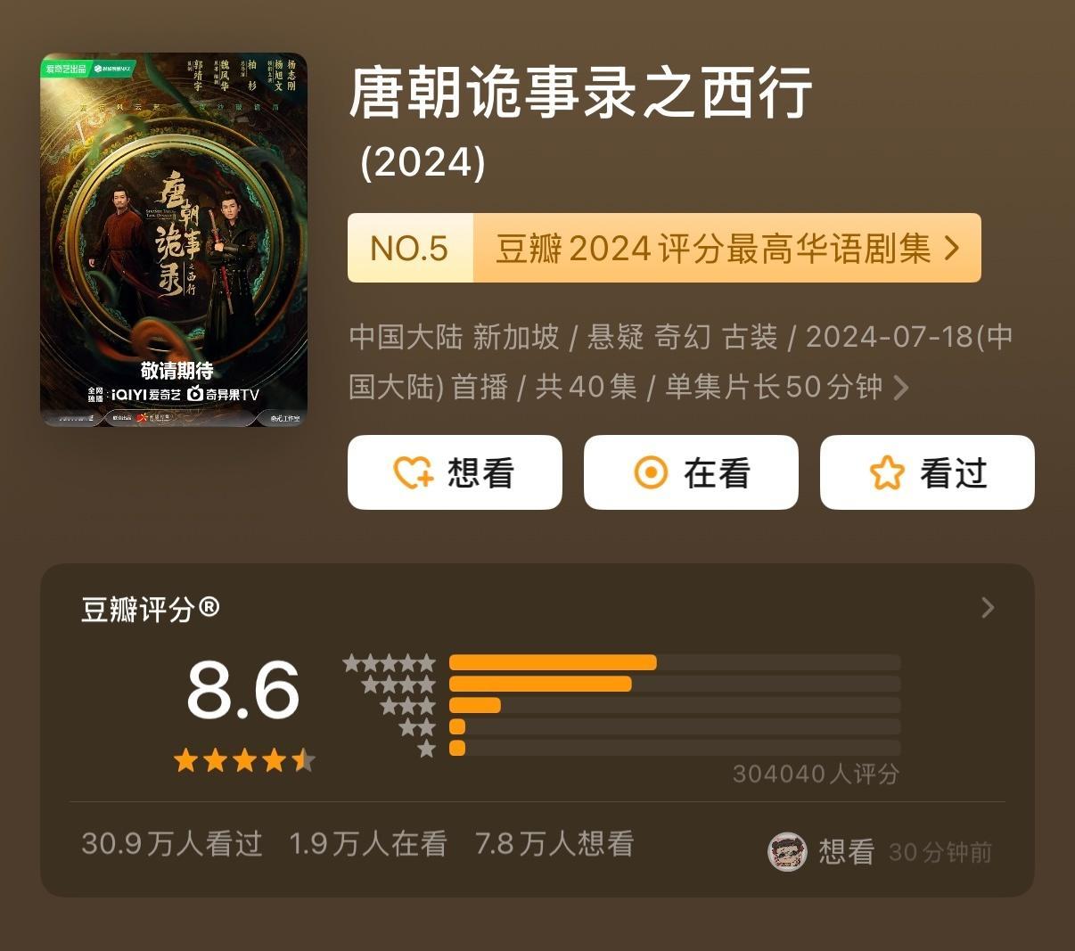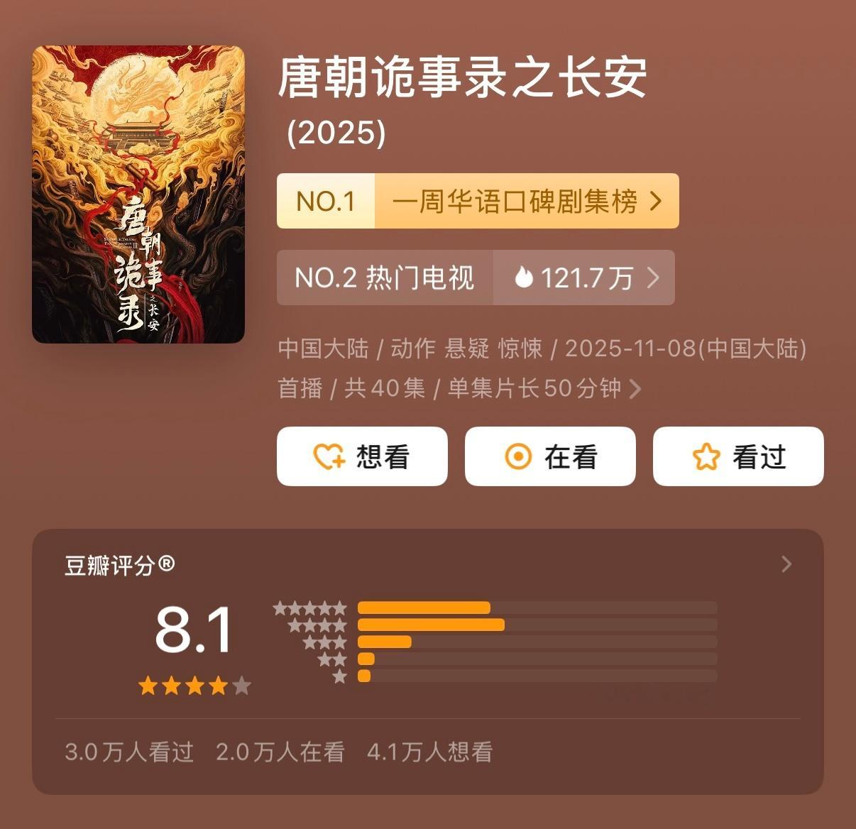 三部曲都是高开分,能够做到的剧不多了。但就是第三部的开分确实太快了,11月8号开播,11月10号就开分了。