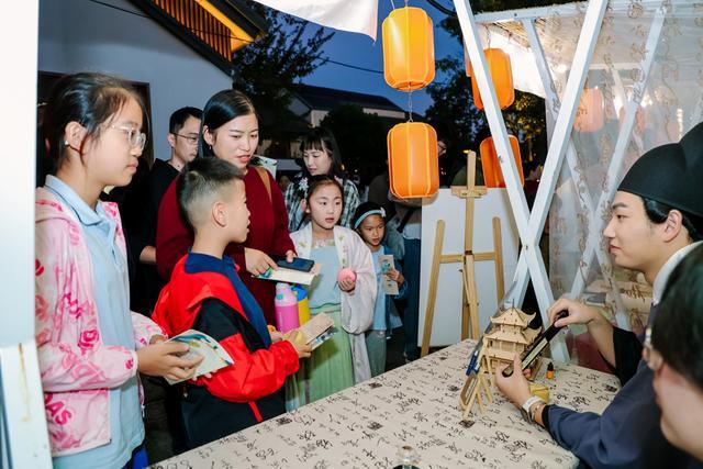 国潮非遗创意市集以“文人墨客”“神话传说”“名著探秘”三个板块为核心,让历史人物“活”起来。比如,“文人墨客”区里,“米芾”现场挥毫展示书法魅力,孩子们还能通过背诵《岳阳楼记》等名篇获取相应奖励;“名著主角”区里,由演员扮演的林黛玉与贾宝玉、梁山伯与祝英台等经典形象成为打卡焦点,吸引游客驻足。活动现场还推出了趣味横生的“通关文牒”系列挑战,市民游客可深度参与其中,体验投壶、对弈等,让文化传承从“被动接受”变为“主动参与”。