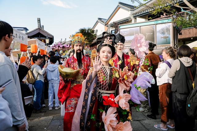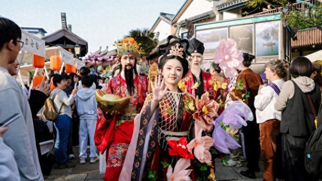 本次活动上,市精神文明办还联动上海越剧院、上海民族乐团等,让《红楼梦》《梁山伯与祝英台》等经典戏剧选段走出剧场,成为市民触手可及的精神食粮。另外,让人眼前一亮的是,各具特色的中华经典人物以巡游方阵的形式从烟雨长廊处陆续登场,开启穿越古今的奇幻之旅,将现场气氛推向高潮。东方神话方阵中,“财神”、“嫦娥”引人注目;“四大名著”方阵中,“金陵十二钗”衣袂翩跹,“孙悟空”舞动着金箍棒;文人墨客方阵中,“李白”举杯、“李清照”执扇,尽显江南文韵。