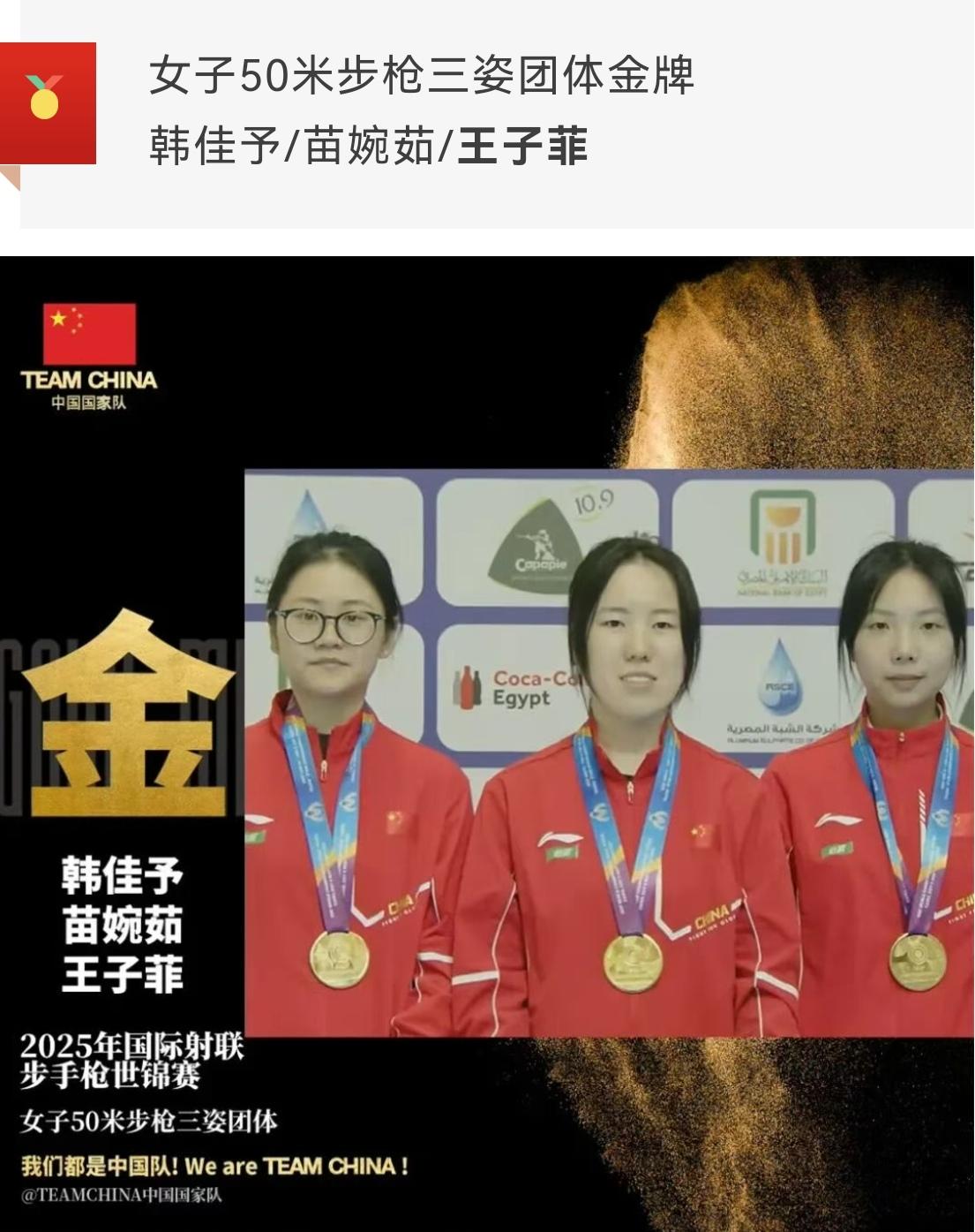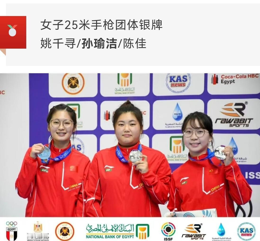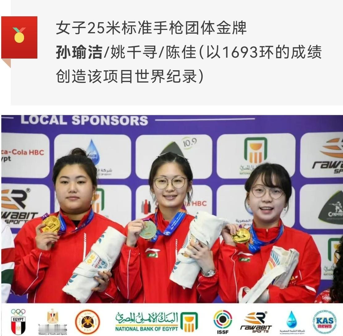 2025年步手枪射击世锦赛,这些4金2银来自杭州富阳 目前,中国队已经结束该赛事的所有参赛项目,并取得12金7银2铜优异成绩,其中有4金2银来自我们杭州富阳区,而且其中的女子25米标准手枪团体金牌以1693环的成绩创造该项目世界记录!4金2银的奖牌分布及参赛选手分别是: 一、四金依次是: 1、女子10米气步枪团体金牌:韩佳予、王子菲、彭鑫露; 2、10米气步枪混合团体金牌:王子菲、盛李豪; 3、女子50米步枪三姿团体金牌:韩佳予、苗婉茹、王子菲; 4、女子25米标准手枪团体金牌:孙瑜洁、姚千寻、陈佳。 二、二银分别为: 1、女子10米气步枪银牌:王子菲; 5、女子25米手枪团体银牌:姚千寻、孙瑜洁、陈佳。 其中的王子菲和孙瑜洁都早已经是世界大赛中国的“年轻的老将”了,至于她们两人在2025年世界级赛事的战况,包括本次赛事王子菲至少已经收获7金2银,孙瑜洁也已经是4金1银!