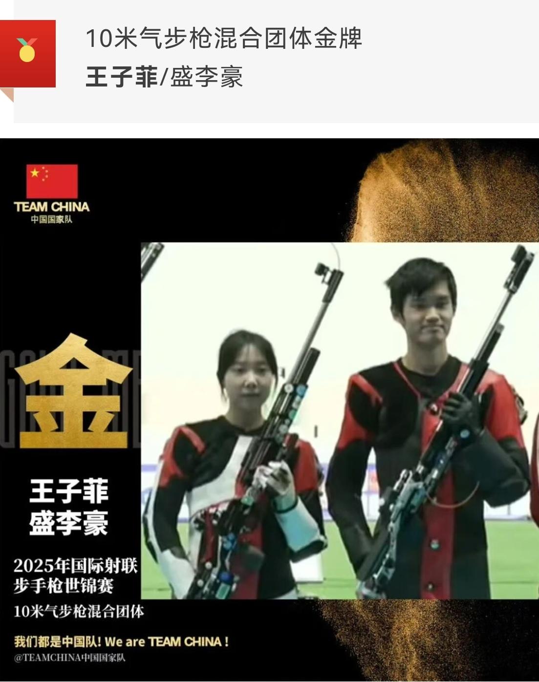 2025年步手枪射击世锦赛,这些4金2银来自杭州富阳 目前,中国队已经结束该赛