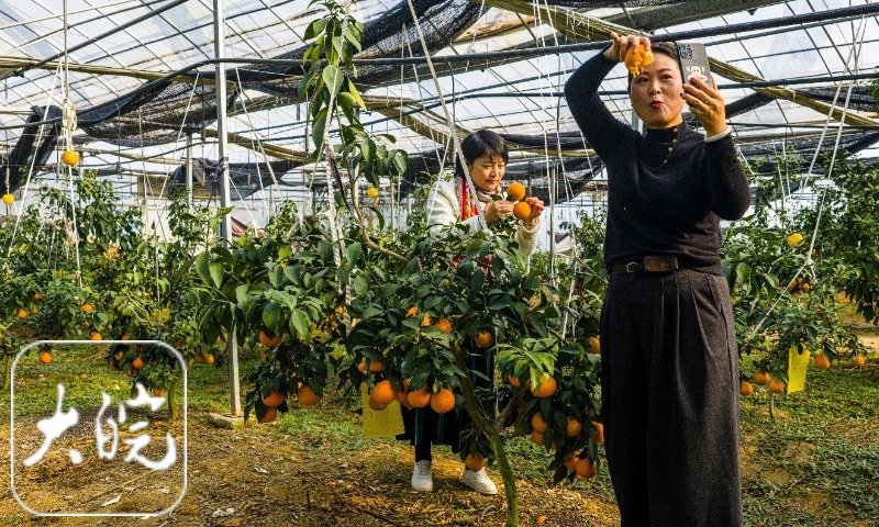 大皖新闻讯11月16日,庐江县冶父山镇登好生态农场里,引进种植的日本品种红美人柑橘全面进入采摘季,游客进园体验采摘乐趣,直播达人则跨空对接市场扩大销售半径。