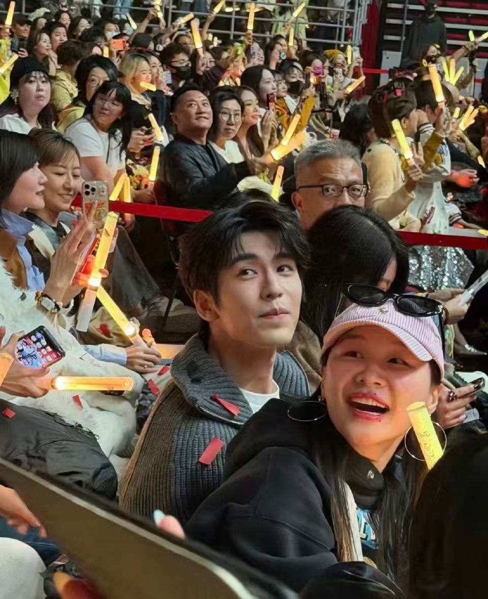11月16日,有网友拍到 金靖 一起看刘宇宁演唱会,张凌赫还把刘宇宁的应援棒甩飞