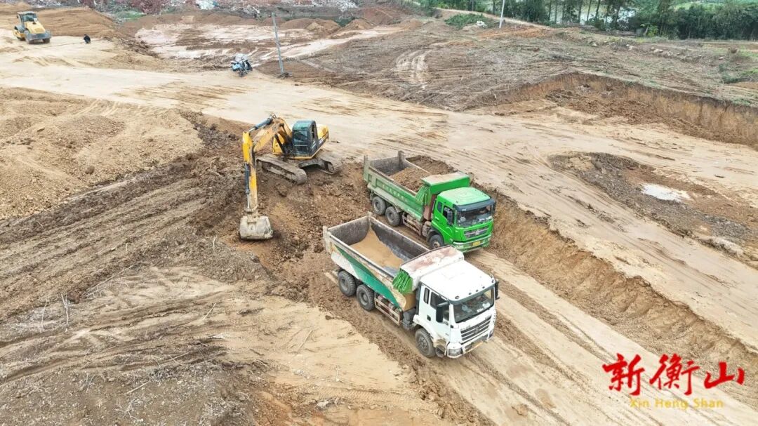 11月12日,衡山渡景区停车场项目建设现场却是一派热火朝天的景象。挖掘机、运输车往来穿梭,工人们正紧张地进行钢筋安装和混凝土浇筑,为停车场设施打下坚实基础。