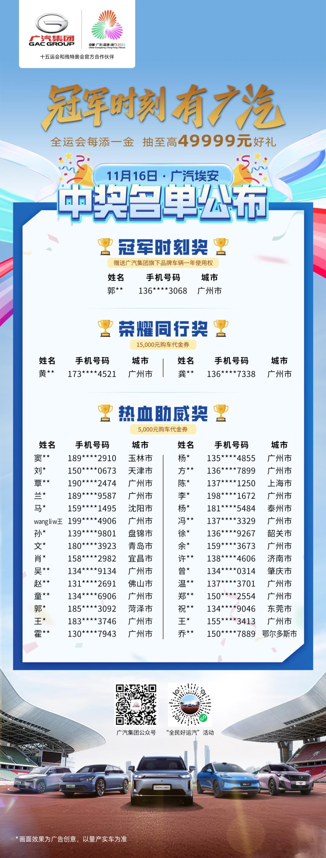 太精彩了!广汽作为本次全运会汽车唯一官方合作伙伴,还搞了一个巨型福利活动,天天抽