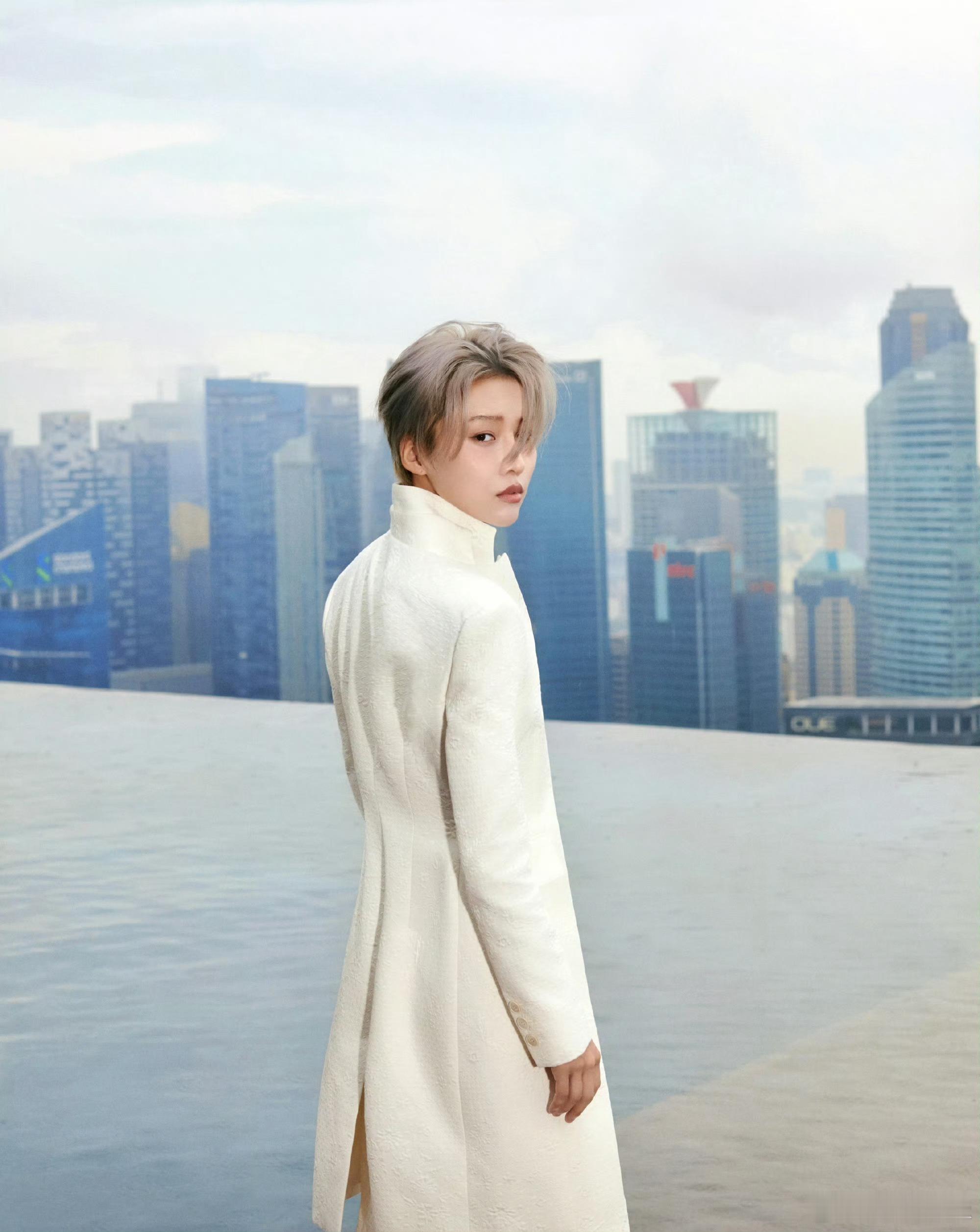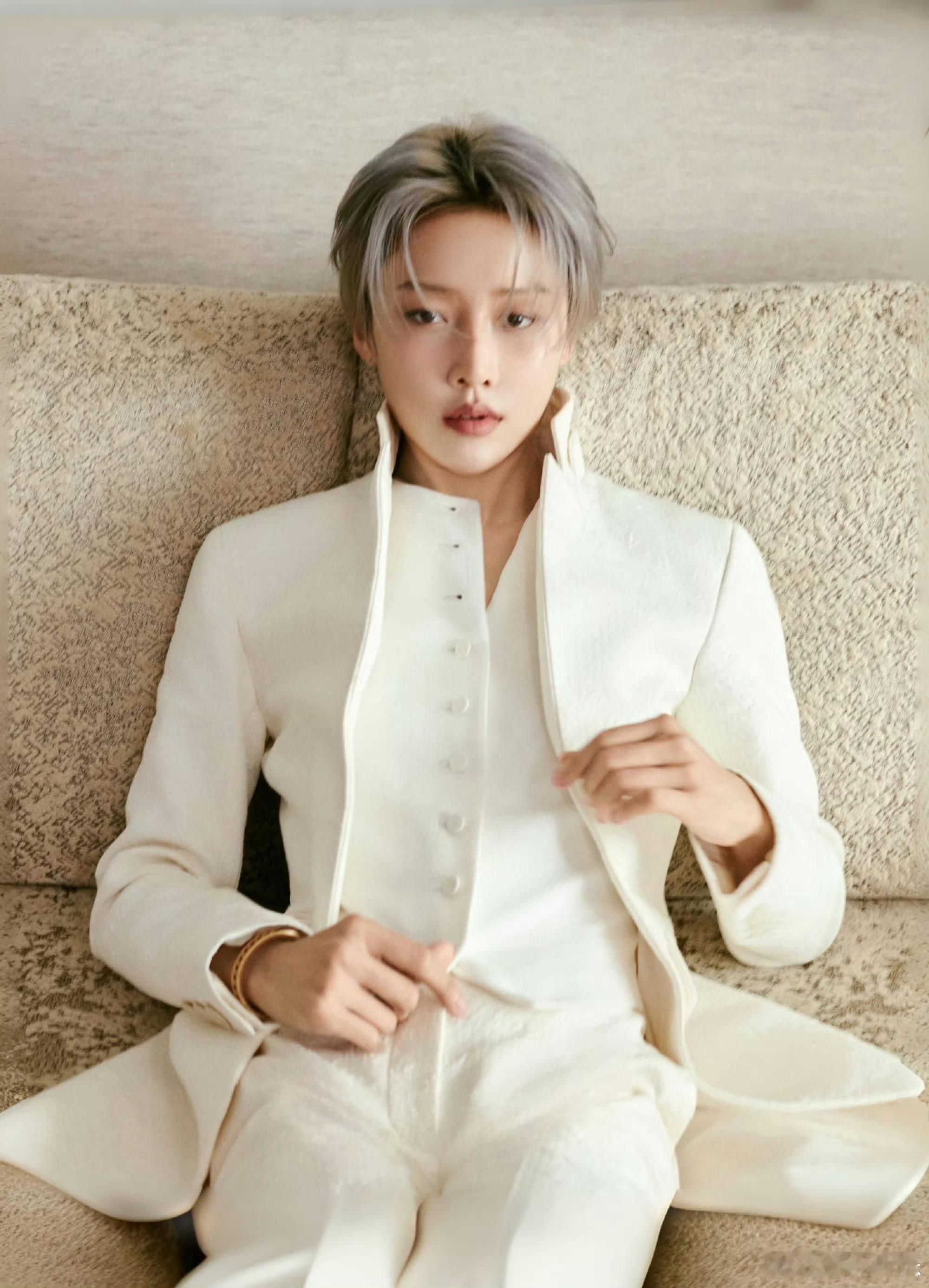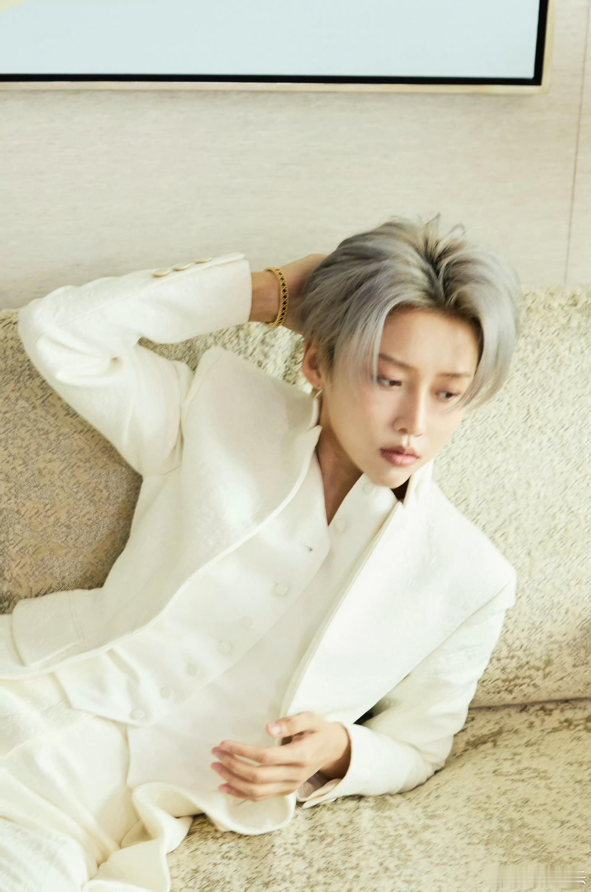 刘雨昕亮相微博文化交流之夜红毯,纯白西装造型太帅了!