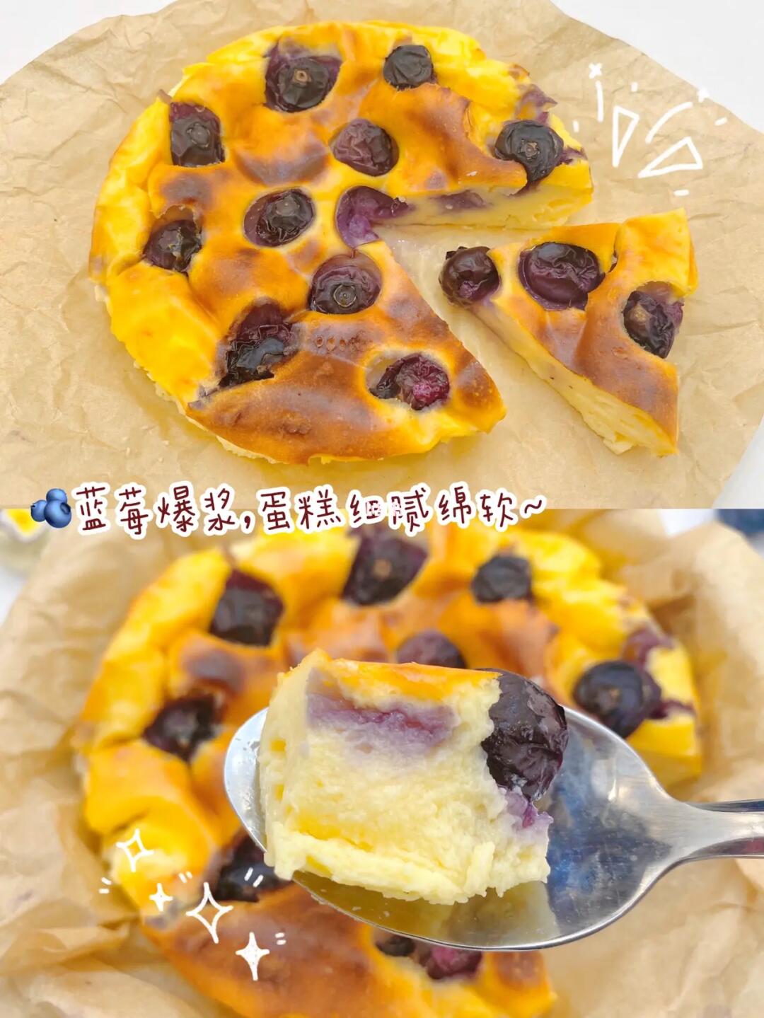 🫐烤好的蓝莓爆浆、蛋糕细腻绵软,口感酸甜入口即化,没牙的小宝宝也能吃,无油低卡,妈妈们一起吃也不用担心会长胖哟✨