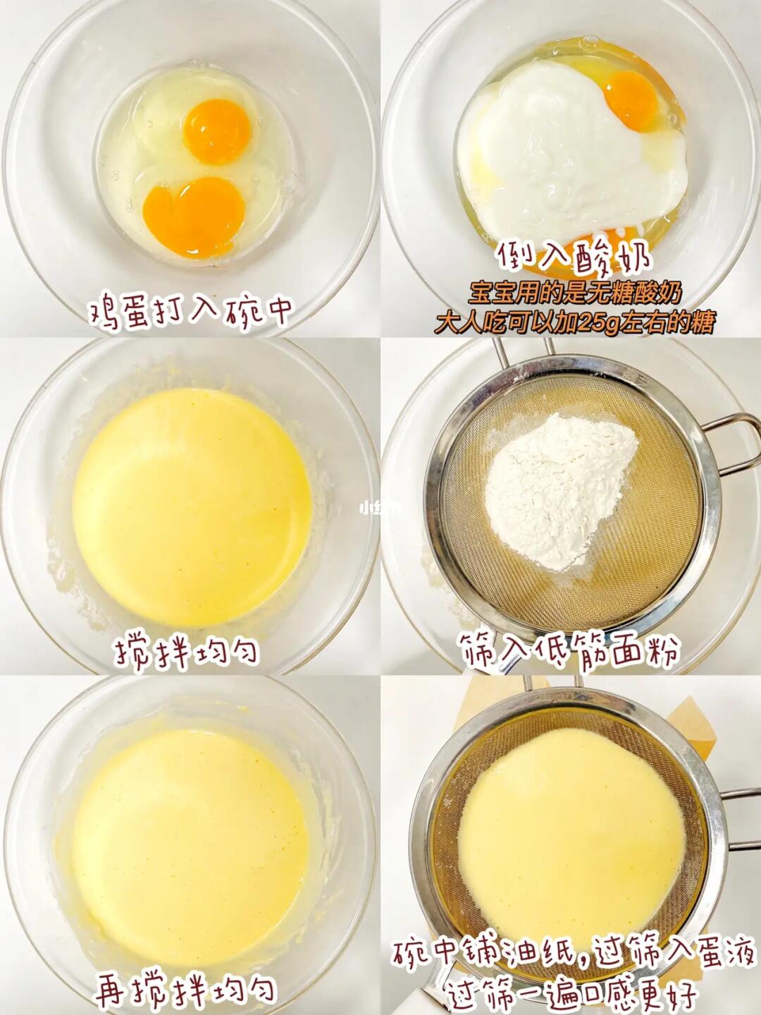 1⃣️鸡蛋打入碗中,加入酸奶,小宝宝用无糖酸奶,大宝宝可以换成有糖酸奶,或再加25g左右的糖。