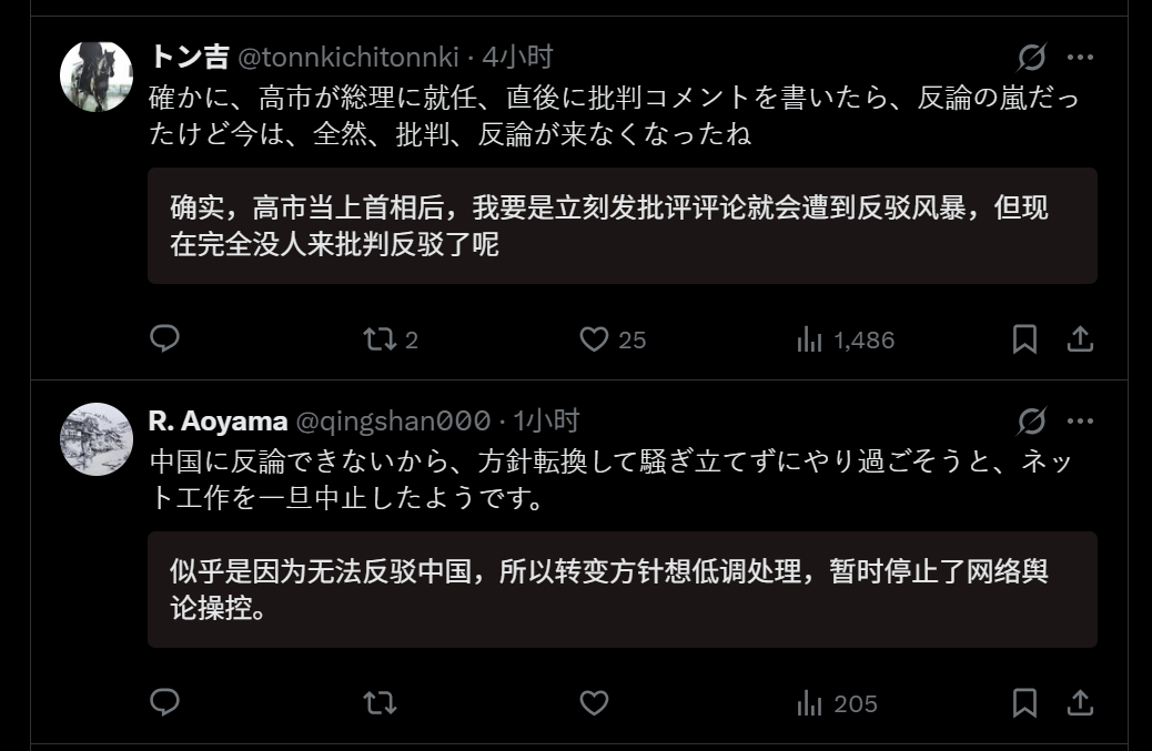 🔻又有日本网民出来表示:这几天高市早苗的机器人水军少多了。🔻但是,日本共同社于 15、16 日两天实施了全国电话民意调查。高市内阁的支持率为 69.9%,较上次 10 月调查上升了 5.5 个百分点。不支持率为 16.5%。