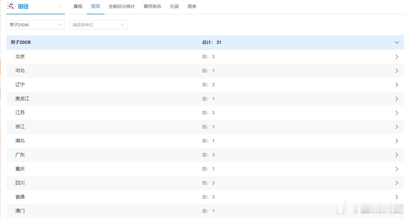 全运短跑赛程独特被迫调整 冷门项目人太少取消半决赛 11月16日上午进行男女100米的预赛,晚上进行男女200米的预赛。这是本届全运会田径大项里的一个奇怪赛程设置。对于看惯了世锦赛和奥运会田径大赛的发烧友来说,这样的安排真是很不舒服。200米跑一般都安排在100米跑结束后才开始,同天预赛显得和普遍规则脱节。当然,发烧友不舒服,不如选手不舒服来得直接有效果。11月16日晚原先预定有的男子200米预赛,事实上并没有出现。但女子200米预赛还有。按照现在最新的官方消息,男子200米预赛,被调整到11月18日上午进行,接着在11月19日晚上直接进行决赛,没有半决赛(复赛)。这里除了有调整赛事安排的呼声之外,更是无奈之举。因为100米预赛和200米预赛挨得太近,有些符合报名资格的选手,可能就放弃争夺,安心跑100米,或者备战接力。毕竟对于田径王者项目的100米而言,200米属于冷门偏门项目。这样就出现了一个谁也不愿意看到的场景:退赛太多,导致200米实际参赛人数太少。按照现在给出的数据,女子200米跑还有26人参赛,而男子只剩下21人。这点人手如果走三枪流程,等于说是21人淘汰5人到16人,16人再淘汰8人到决赛。过于繁琐没必要。而且实际比赛时人可能更少。所以今年全运会的男子200米,不但时间挪后,三枪设置也变更为了更直接的两枪。