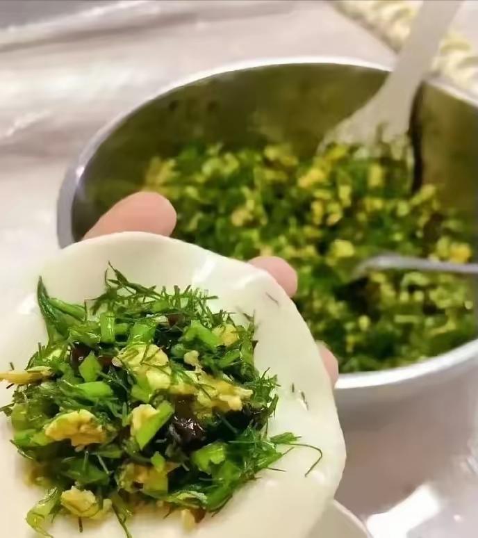 茴香馅水饺! 本人的钟爱,嫩嫩的茴香苗,配上鸡蛋虾皮也行,鲜猪肉切丁也可,别忘了多放点儿油,茴香喜油,一想起来就有点儿流口水。哈哈哈,这也是茴香的片面性,也有很多人不喜欢吃茴香,不喜欢茴香馅的味道,再好的东西,有人钟爱有人不喜欢,人之常情,就像生活中的香菜、姜、葱蒜等,有人欢喜有人忧,很不喜欢那种味儿,其实,茴香是一种中药材,对人体很有好处,大家都知道茴香不招虫子,因此也无需打药,都知道很卫生很安全了吧! 尝试一下吧?你也会爱上它!