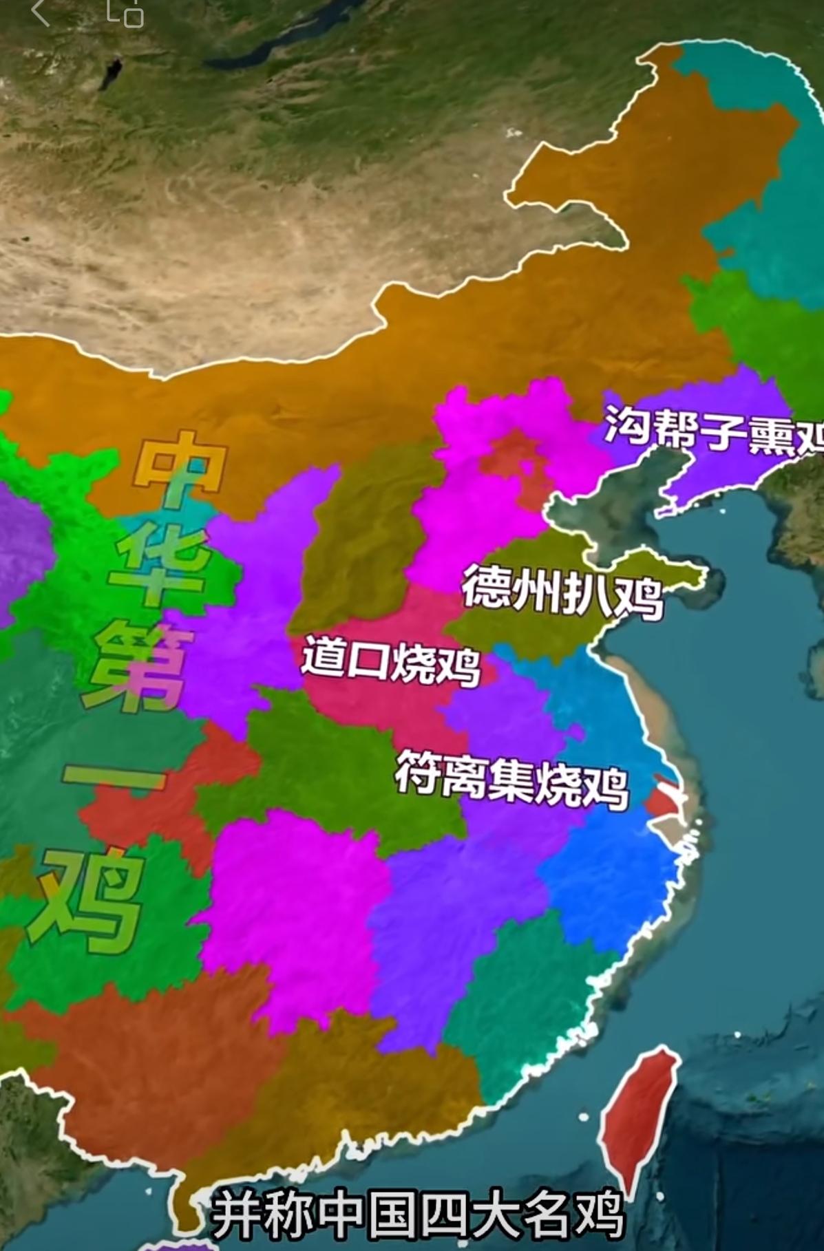 没有一只鸡能活着跑出中国版图 朋友们,您爱吃鸡肉吗?您脑海里第一时间能想到的具有全国各地代表性鸡肴名菜是什么呢?扒鸡、大盘鸡、文昌鸡、椰子鸡、口水鸡、白斩鸡?这几种是我到过的旅游城市吃过的鸡肉,味道不错印象深刻。 有一位网友把全国版图上标注了各地有名的鸡肴名称,细细看来,还真是如此,没有一只鸡能活着跑出中国版图呢。他说的最为有名的中华第一鸡是这四种:河南道口烧鸡、山东德州扒鸡、安徽符离集烧鸡、辽宁沟帮子熏鸡。友友们认可吗? 作为一名湖北资深吃货,我还不晓得湖北省最为有名的鸡肉名肴是翰林鸡,它在哪个城市啊?市面上能买到吃的最多的是椒麻鸡,我把它当成了湖北菜了,又在网络上被安利了一课,真有趣。 友友们,你们当地最为有名的鸡肉菜肴是什么呢?评论区里告知一下,免得旅游时错过啦。(图片来自网络)公鸡德州扒鸡 山东扒鸡 地理标志鸡 山东德州鸡 满汉鸡 四条屏鸡 鸡排行注 鸡排名 海南扒鸡