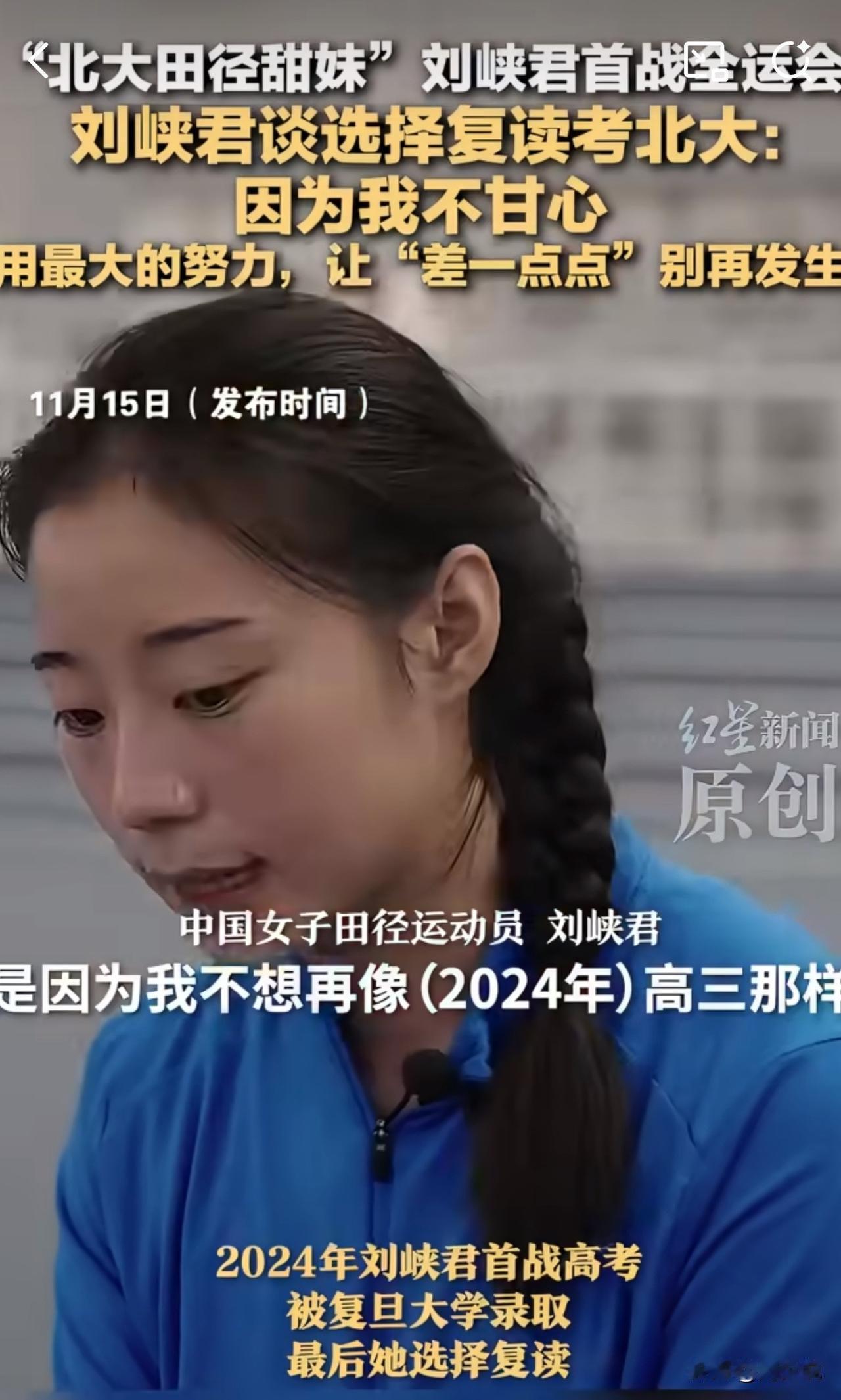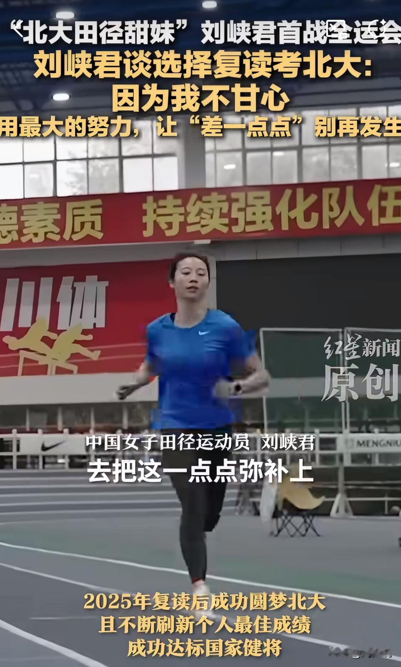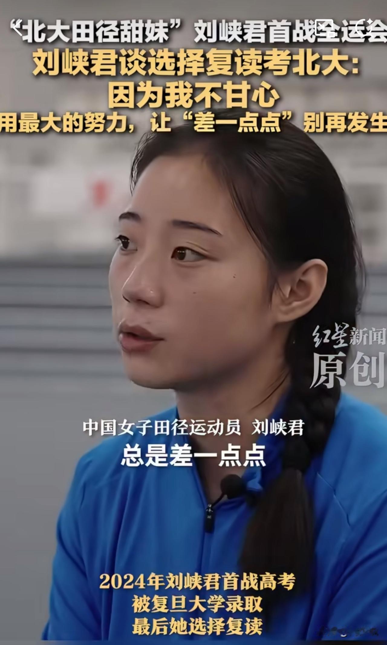 #MCN双量进阶计划#“就为争口气!差一点的遗憾,我绝不让它重演!”近日,首战全运会的四川田径选手刘峡君,谈及复读考北京大学的选择,一番话引发热议。 这个曾因亚洲U20田径锦标赛甜美外形出圈的姑娘,运动赛场屡创佳绩。今年9月世界田联金标赛100米决赛跑出11秒43。2024年高考她已被复旦录取,却因“不甘心总差一点点”,毅然选择复读,2025年成功圆梦北京大学。 此话一出,网友纷纷点赞:“又美又飒还能拼!这份韧劲太圈粉” 还有网友更是坦言:“为了不留遗憾拼尽全力,这才是青春该有的样子”。 其实,周少觉得刘峡君的“不甘心”,藏着最动人的执着。拒绝名校光环,敢于为梦想重启征程,这份不将就、不服输的劲头,远比成绩更珍贵。 青春本就该这样,为热爱全力以赴,为遗憾奋力弥补,用努力把“差一点”变成“刚刚好”。放弃复旦,幅复读考北大,并且还能圆满,的确让人佩服。#寻美三湘# #长沙新朋友#