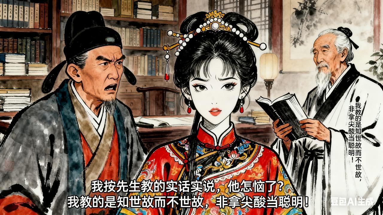 古代笑话 盐商独生女娇生惯养,爱装懂世事, 盐商请先生教她人情世故。 邻县布商带儿子来议亲, 席间盐商让女儿添茶显教养。 女儿学先生的话:“茶如人情,初浓后淡, 常添才暖。”布商儿子称是。 盐商正得意,女儿却墩下茶壶, 指布商儿子衣料: “这像我家腌菜的粗麻布, 怕是染坊剩料织的!”盐商忙圆场, 女儿却梗脖子:“先生教要较真, 这布针脚疏,定是偷工减料!” 布商父子提前告辞。 盐商气极,女儿委屈: “我按先生教的实话实说,他怎恼了?” 先生叹道:“我教的是知世故而不世故, 非拿尖酸当聪明!” 女儿不解:“实话不如假话中听?” 气得先生当日辞工。
