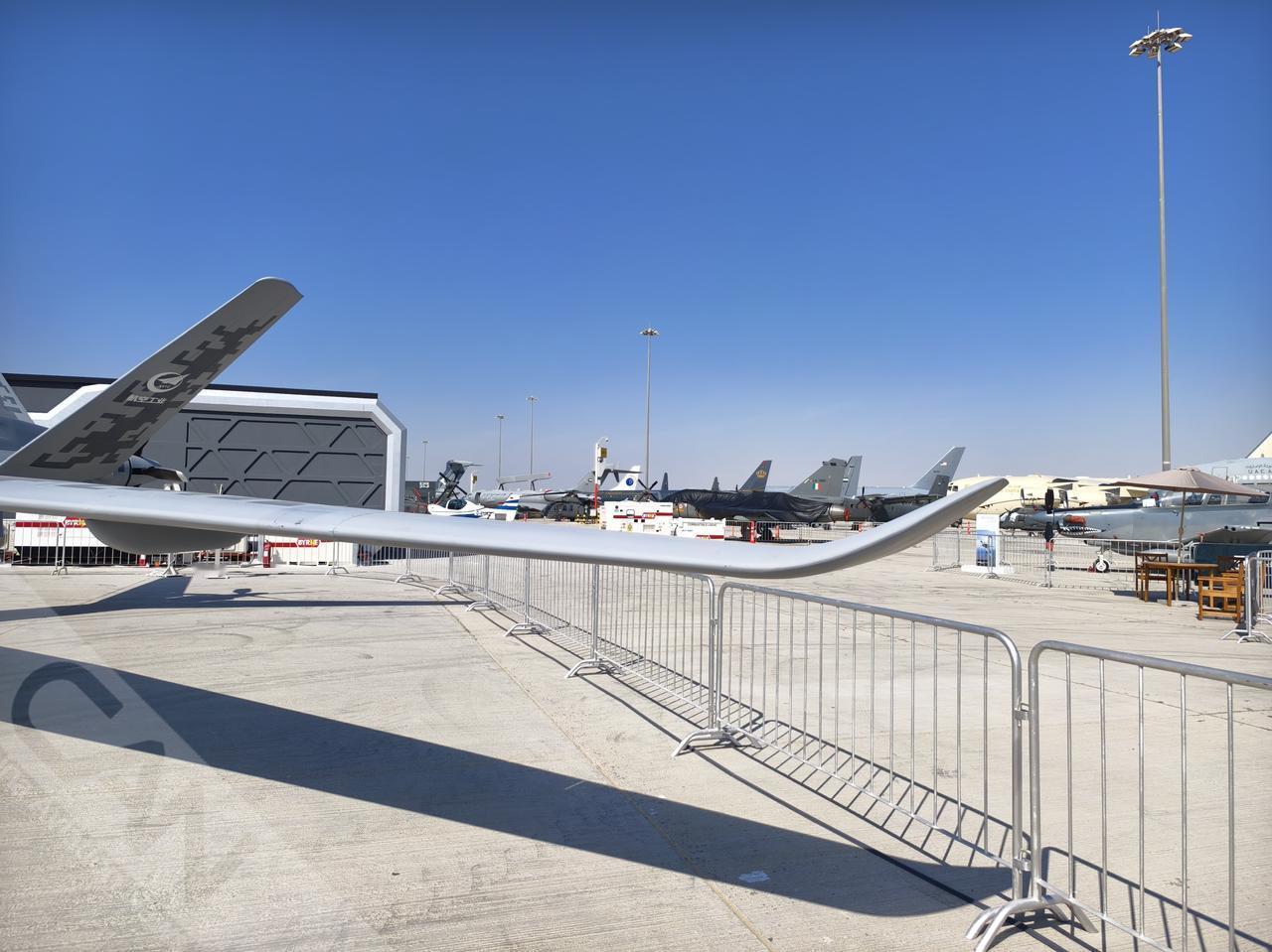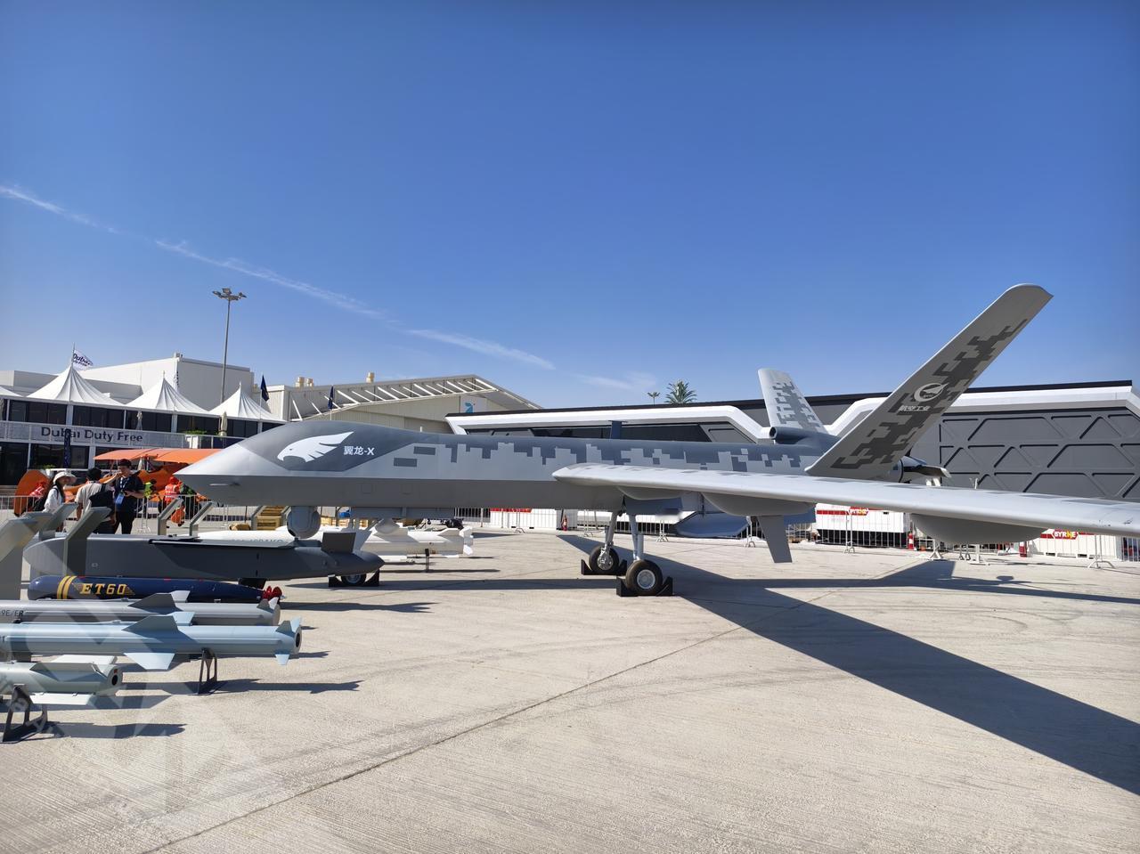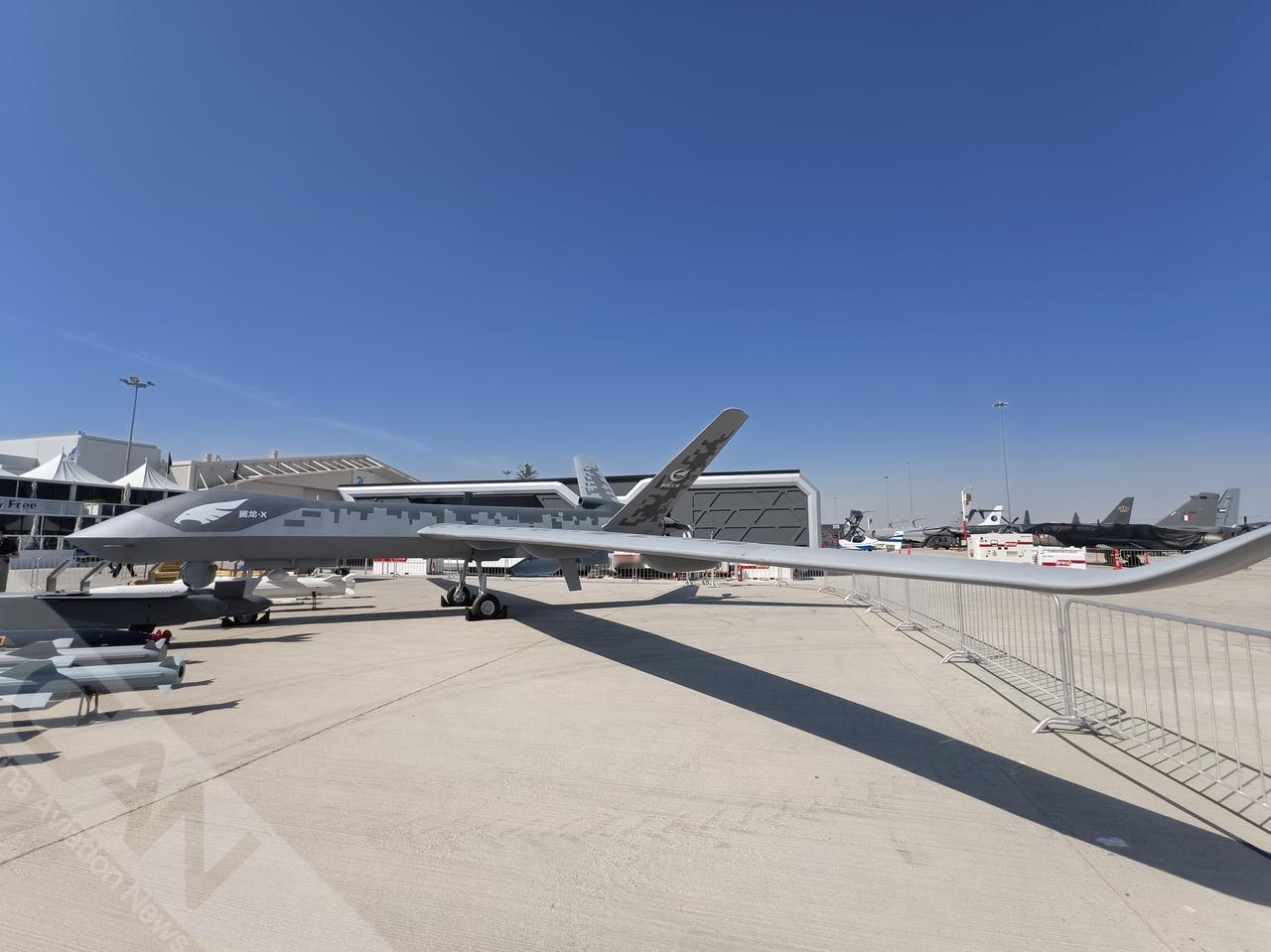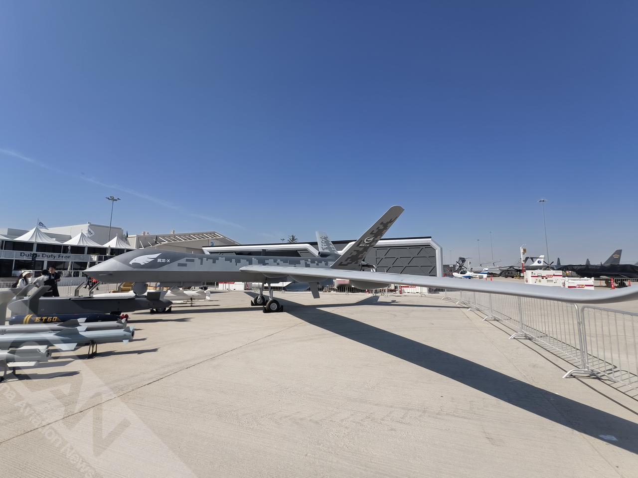2025年迪拜航展室外静展区,“翼龙”-X无人机“重磅”登场。(摄影:吴紫磨)
