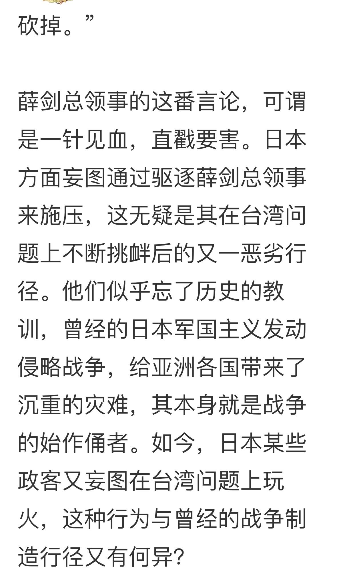 薛剑又发声了,前线就是一片火海,谁过来就砍谁的头,日本、还是美国,都一样,五眼联