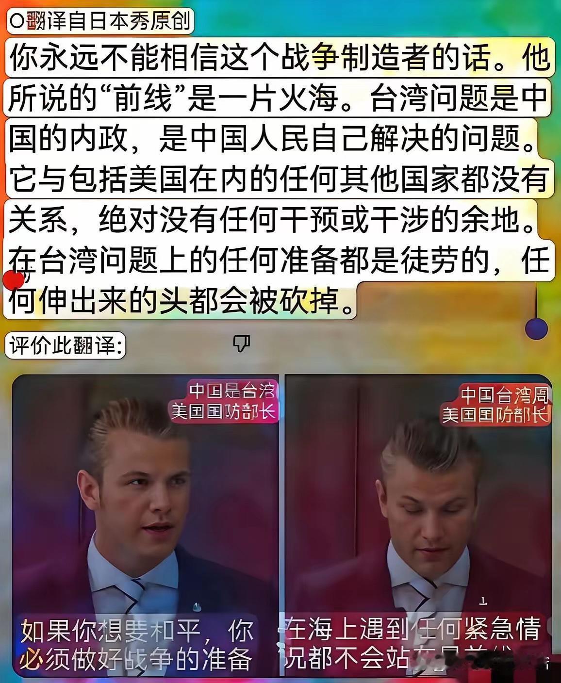 薛剑又发声了,前线就是一片火海,谁过来就砍谁的头,日本、还是美国,都一样,五眼联盟也一样,北约也一样。日本美国是我说的,五眼联盟和北约也是我说的。。