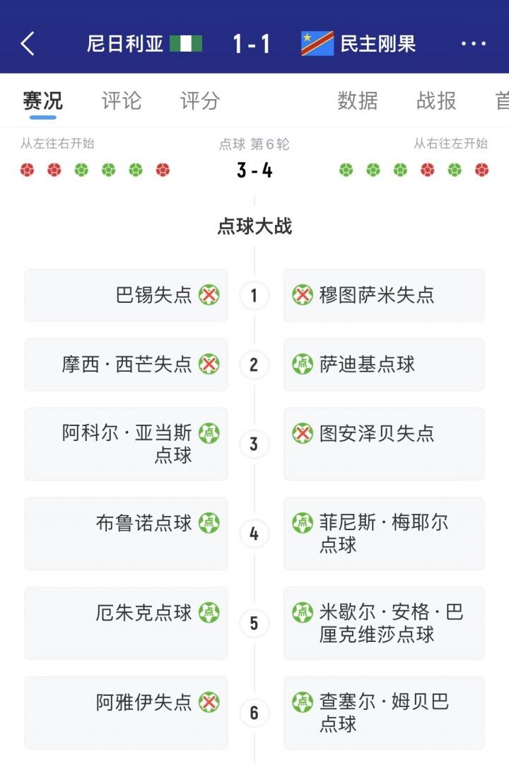 法尤鲁在点球大战中表现出色,两次扑点,尤其是在第6轮扑出了尼日利亚后卫阿雅伊的点球,民主刚果随后点射命中杀死比赛。