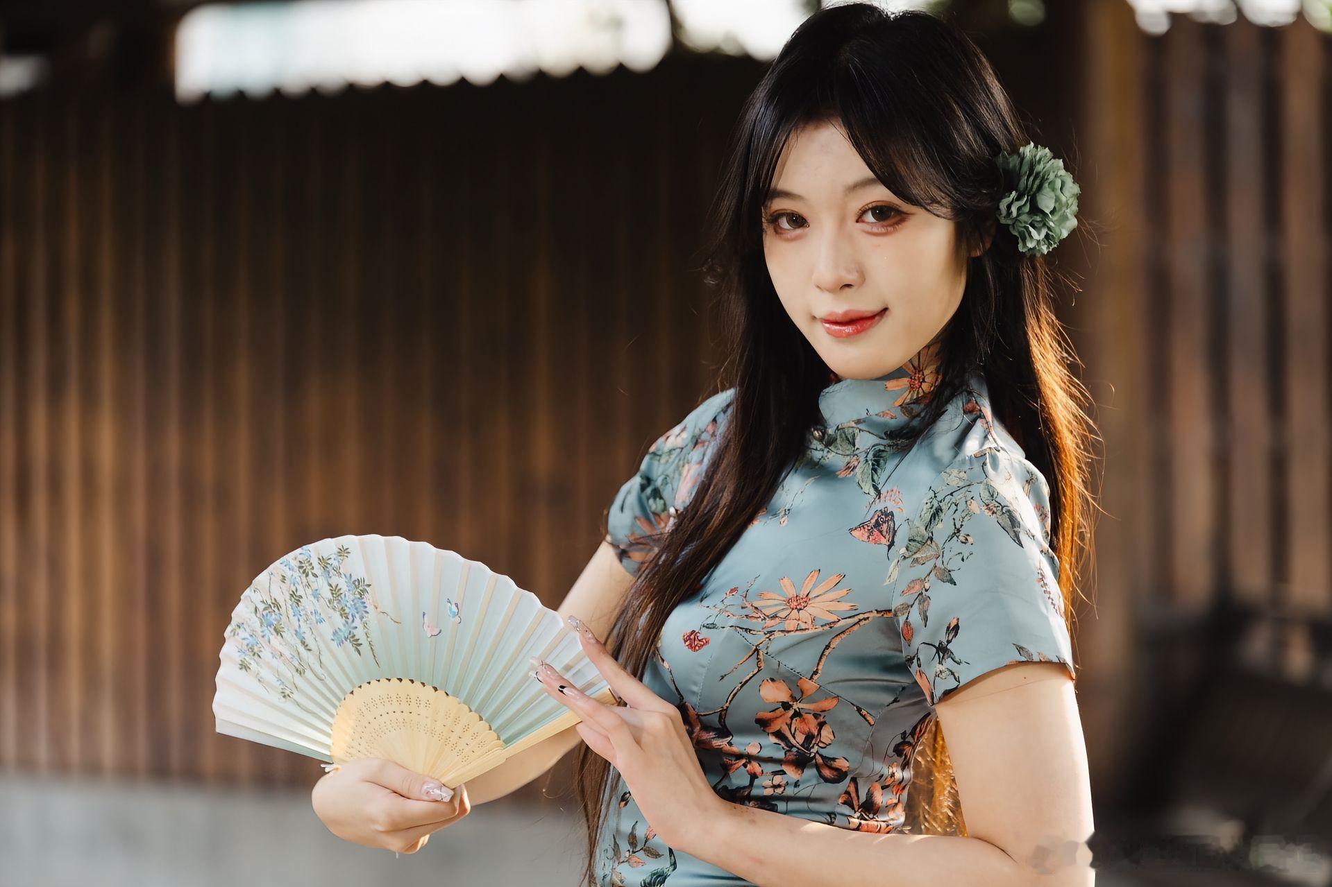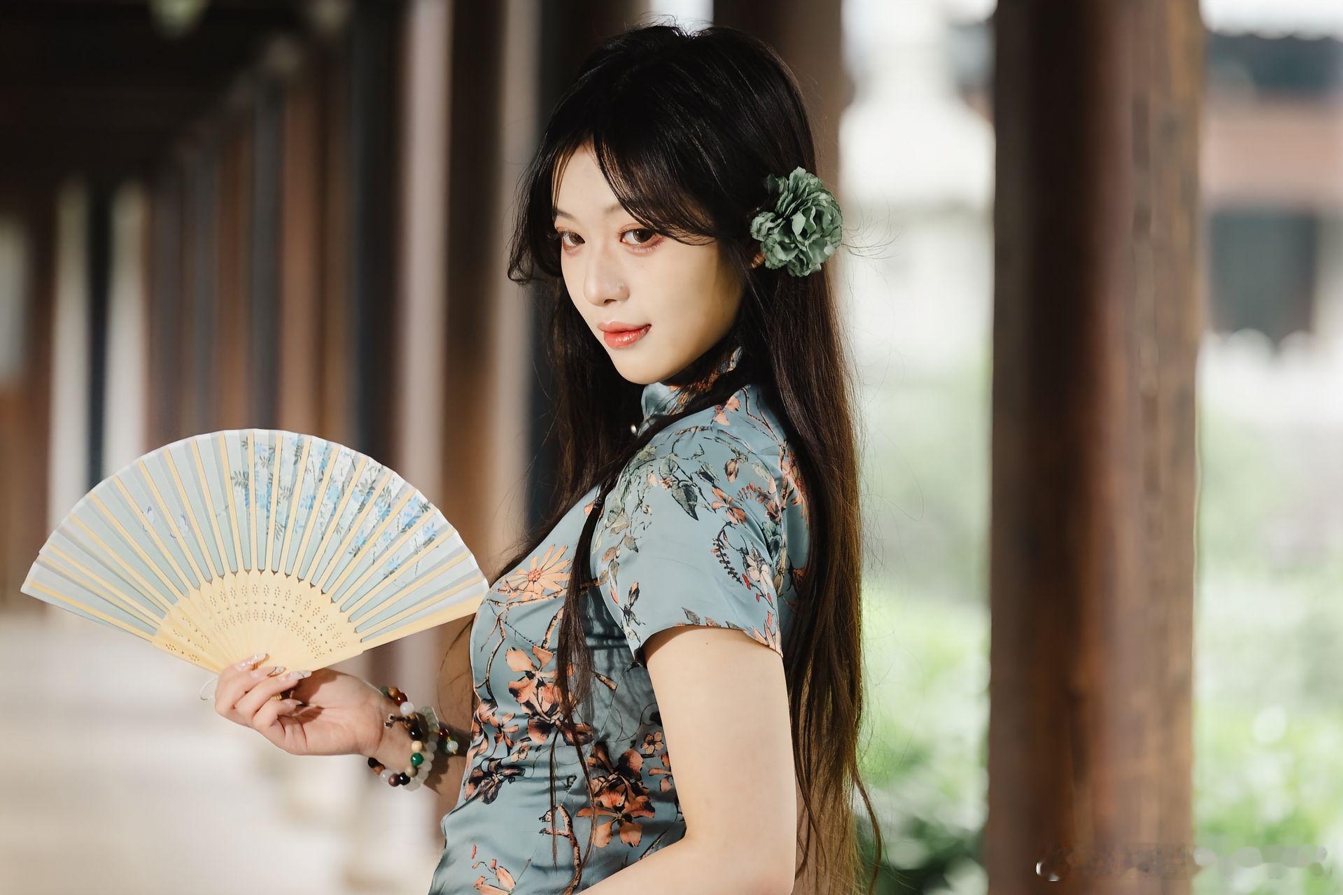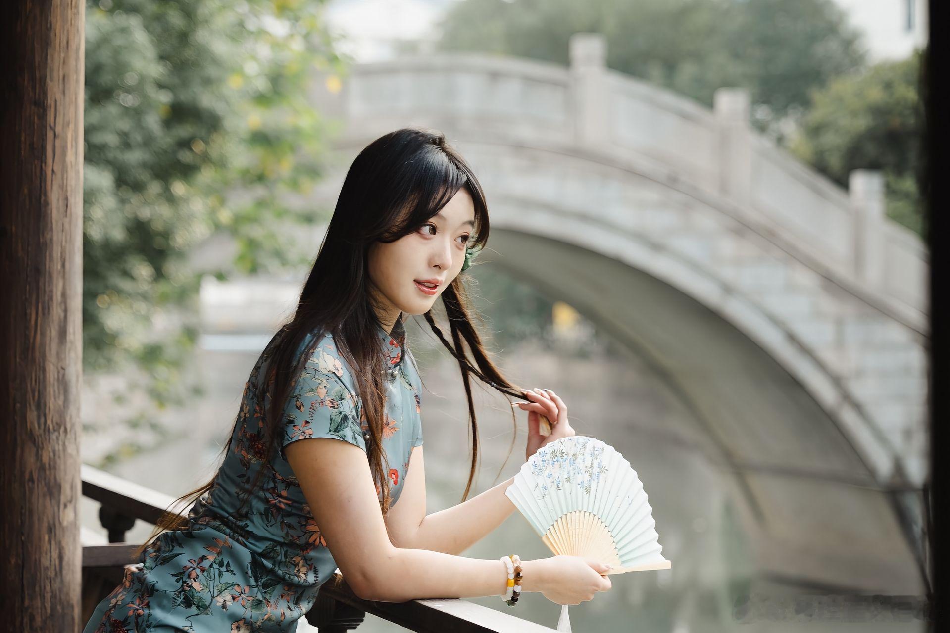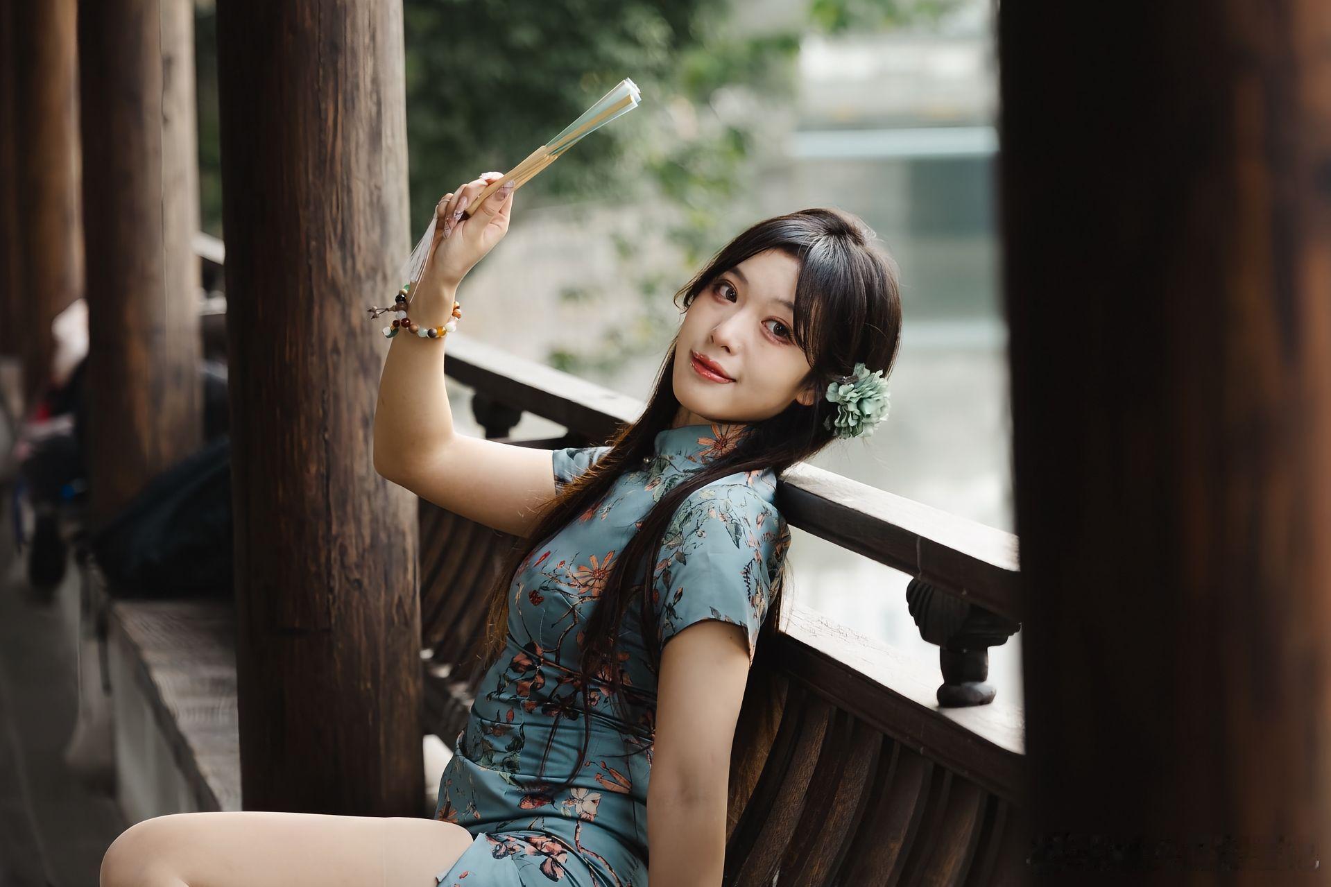 暮色下的旗袍佳人!米白条纹旗袍+玉镯,把民国温婉气拿捏得死死的当暮色降临,