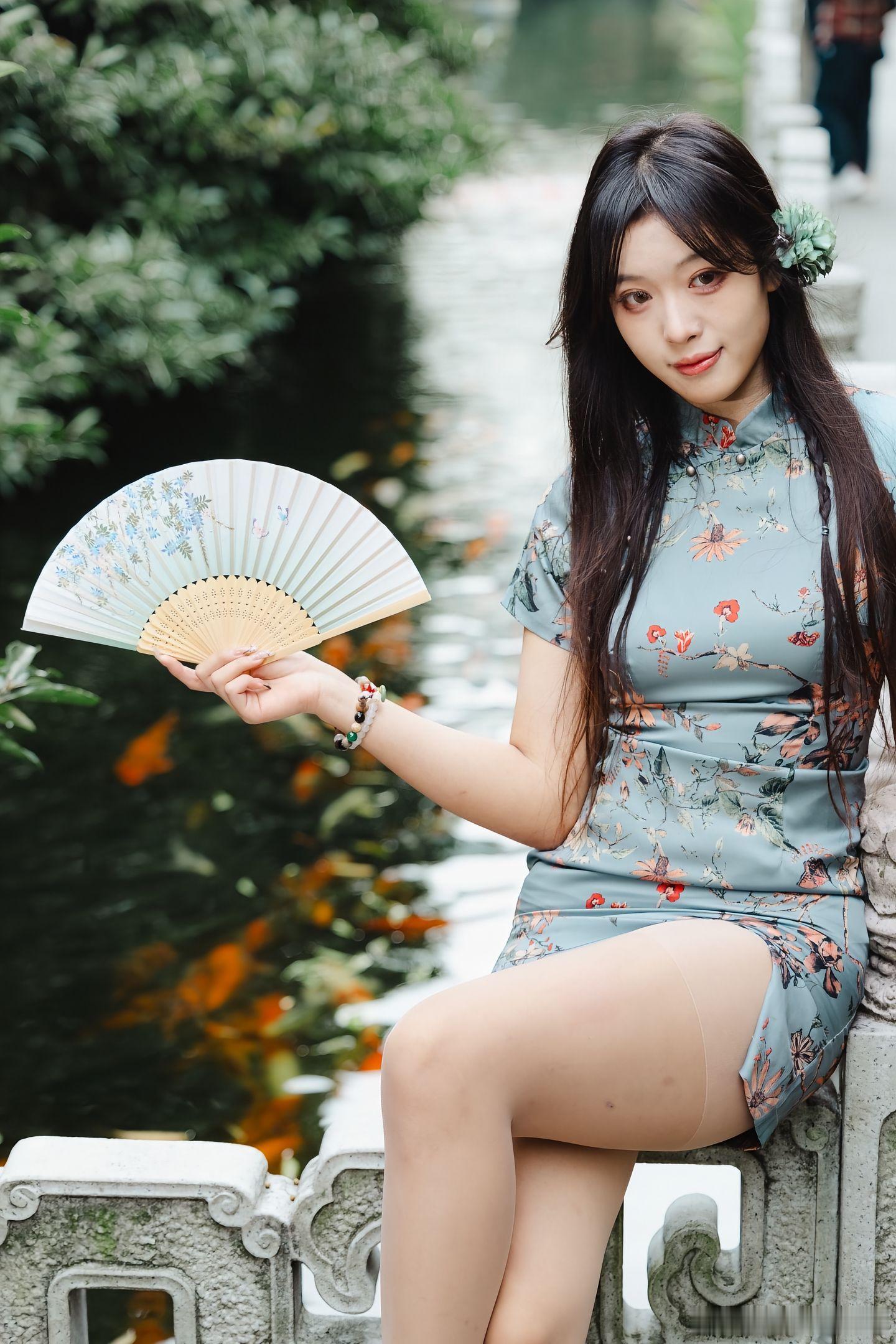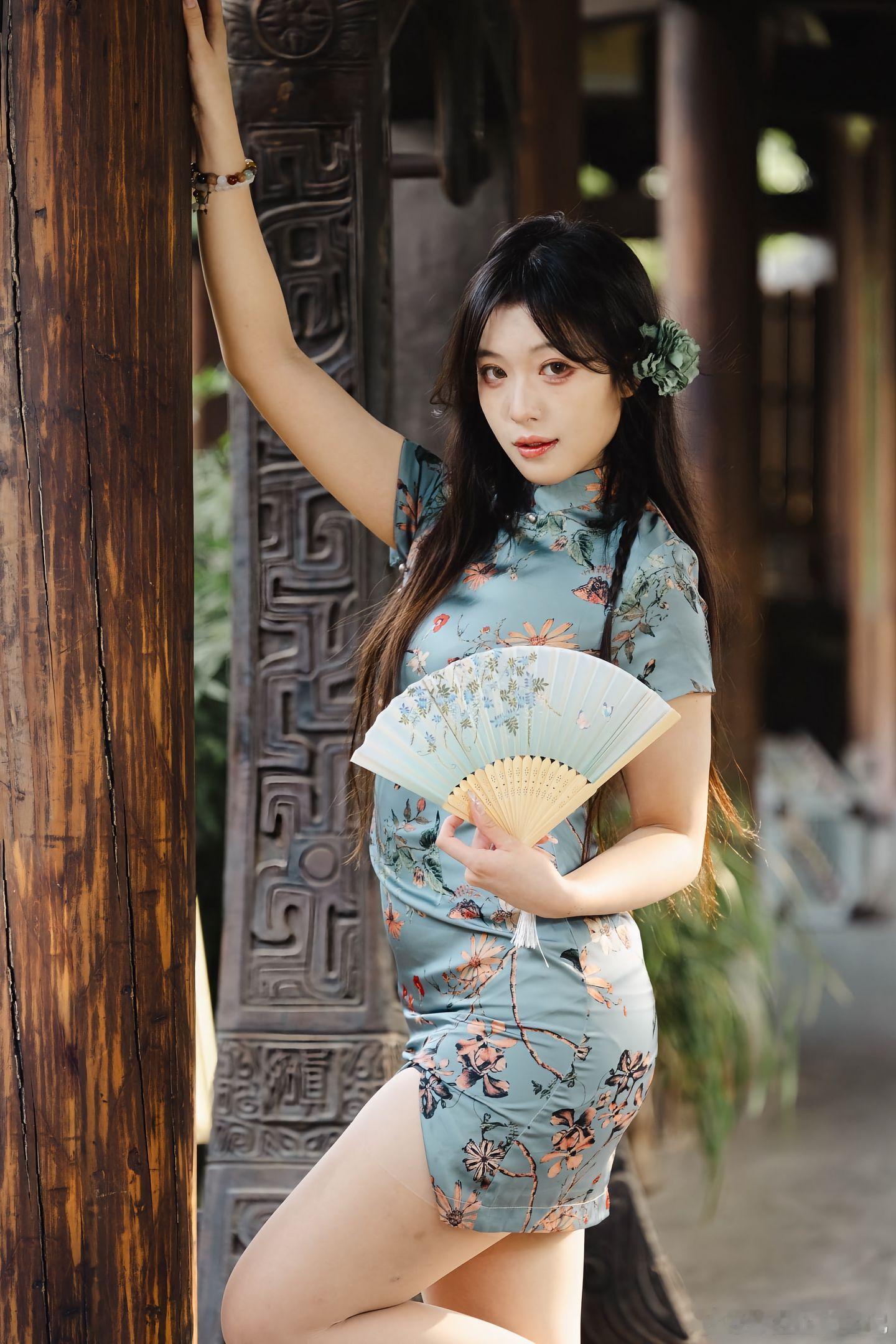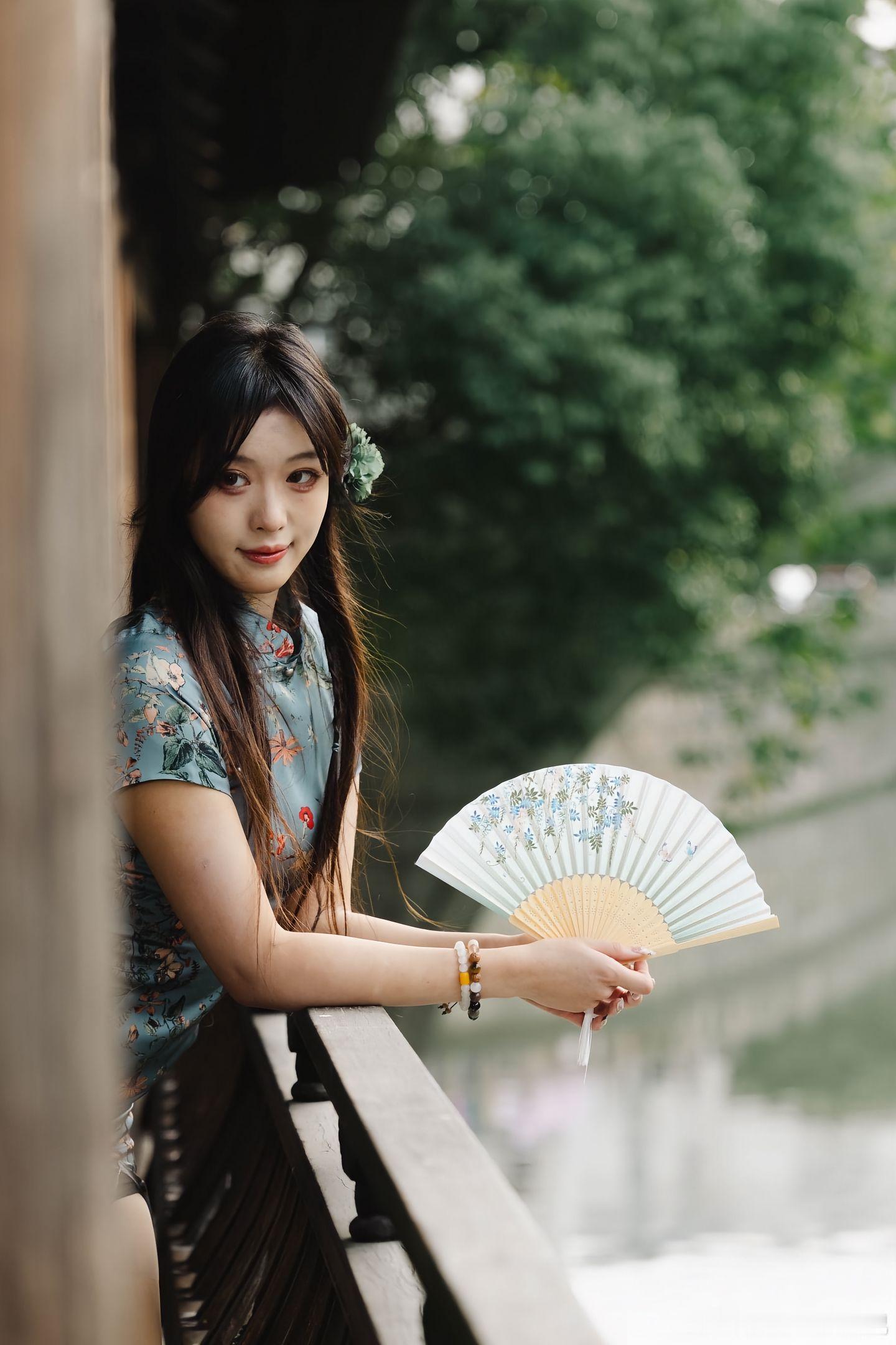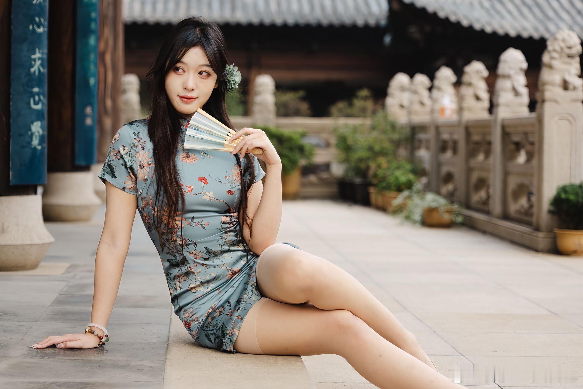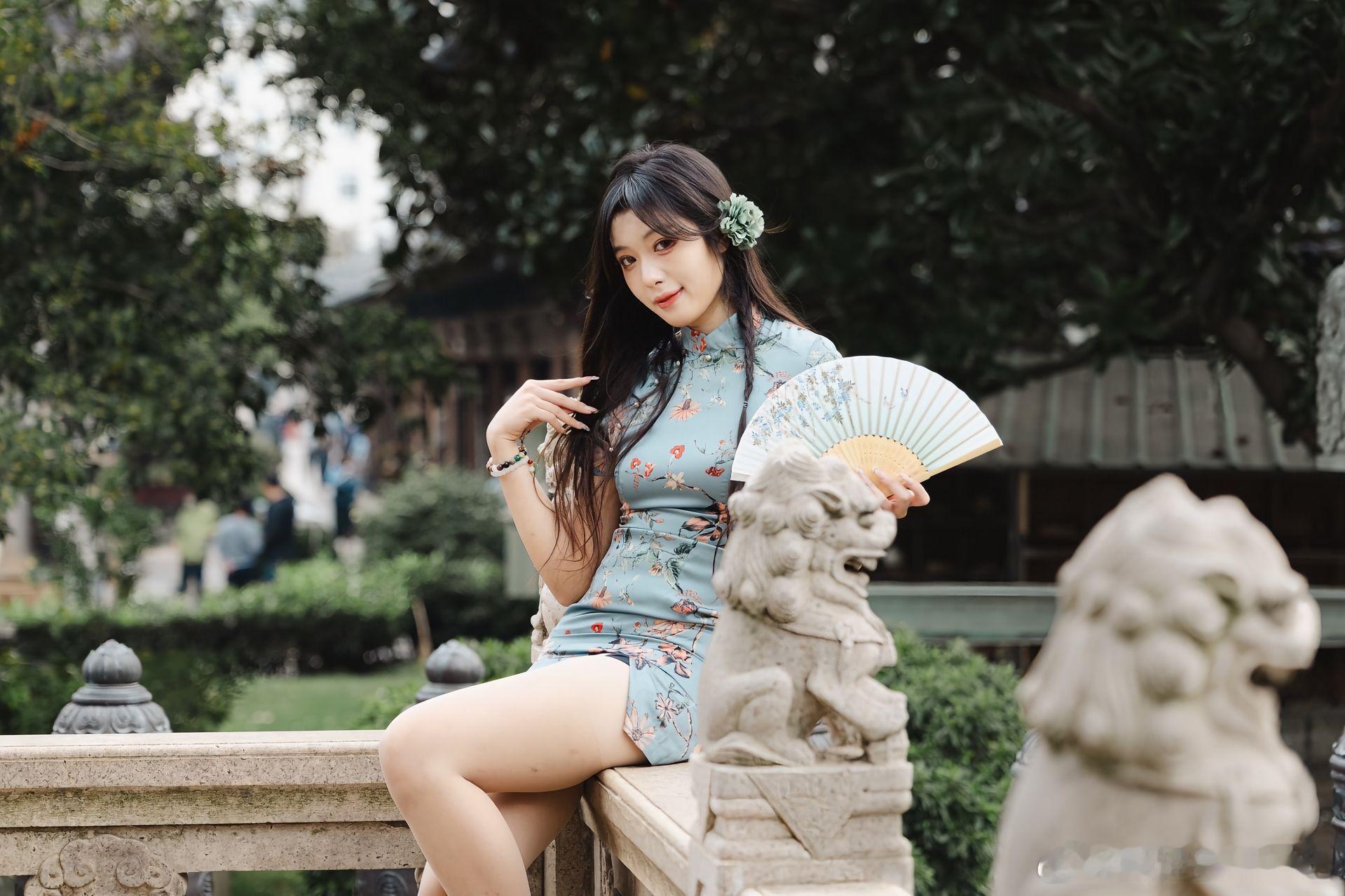 暮色下的旗袍佳人!米白条纹旗袍+玉镯,把民国温婉气拿捏得死死的当暮色降临,