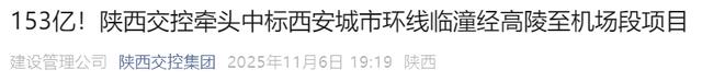 11月6日,由陕西交控集团牵头,陕西交控建投经营管理有限公司组织实施,与陕西交控市政路桥集团、陕西交控绿色发展集团等共计13家单位组成联合体,以社会投资人身份成功中标“西安城市环线临潼经高陵至机场段高速公路特许经营项目”,正式取得中标通知书。