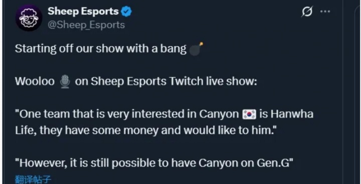 直播吧11月17日讯 据外媒SheepEsports成员在直播中透露,目前LCK的转会期谈判争夺非常激烈,HLE很希望签下Canyon也有足够的资金,但是GEN也非常希望留下Canyon,Canyon留在GEN的可能性依然存在。