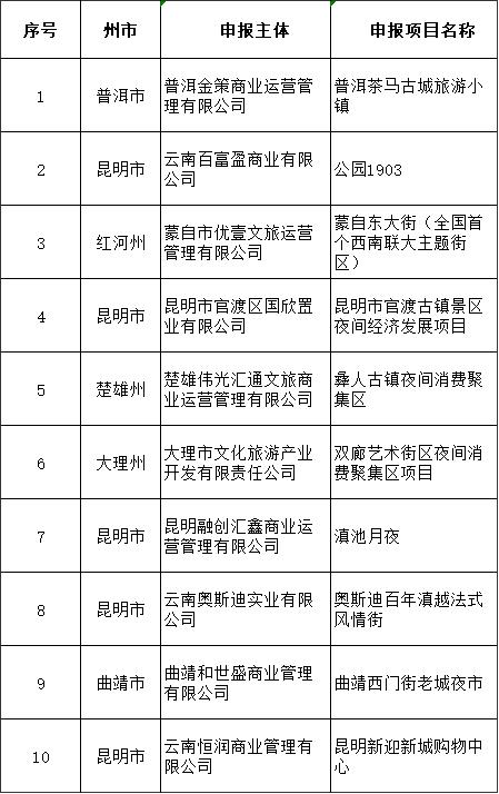 根据《云南省商务厅关于组织开展云南省夜间经济发展项目申报的通知》相关要求,经申报主体申报、州市初审推荐、省商务厅审核,拟对以下通过审核的夜间经济发展项目给予资金奖补,现予以公示。