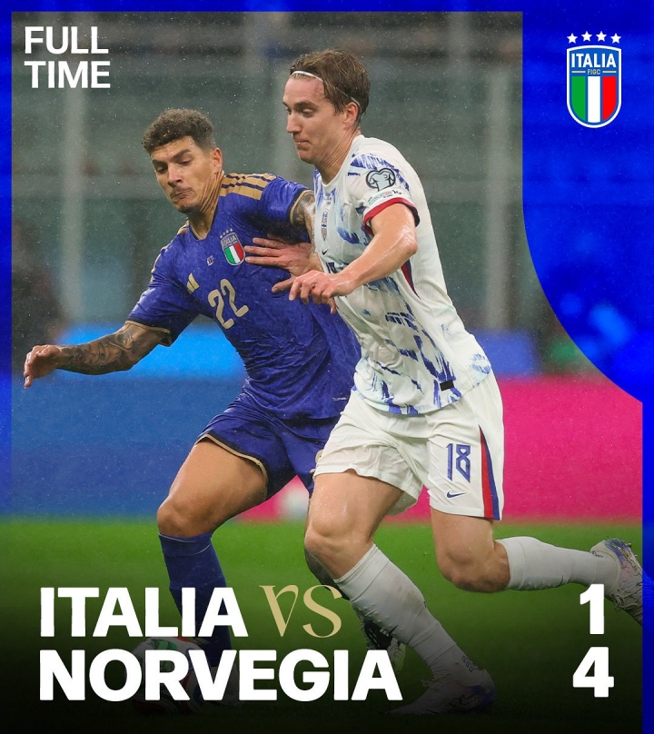 直播吧11月17日讯世预赛欧洲区,意大利主场1-4惨败挪威,加上首回合0-3惨败,他们两度被暴打无缘直通世界杯。
