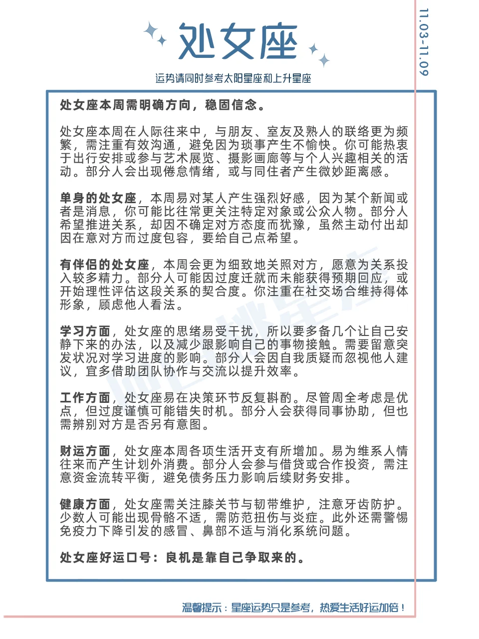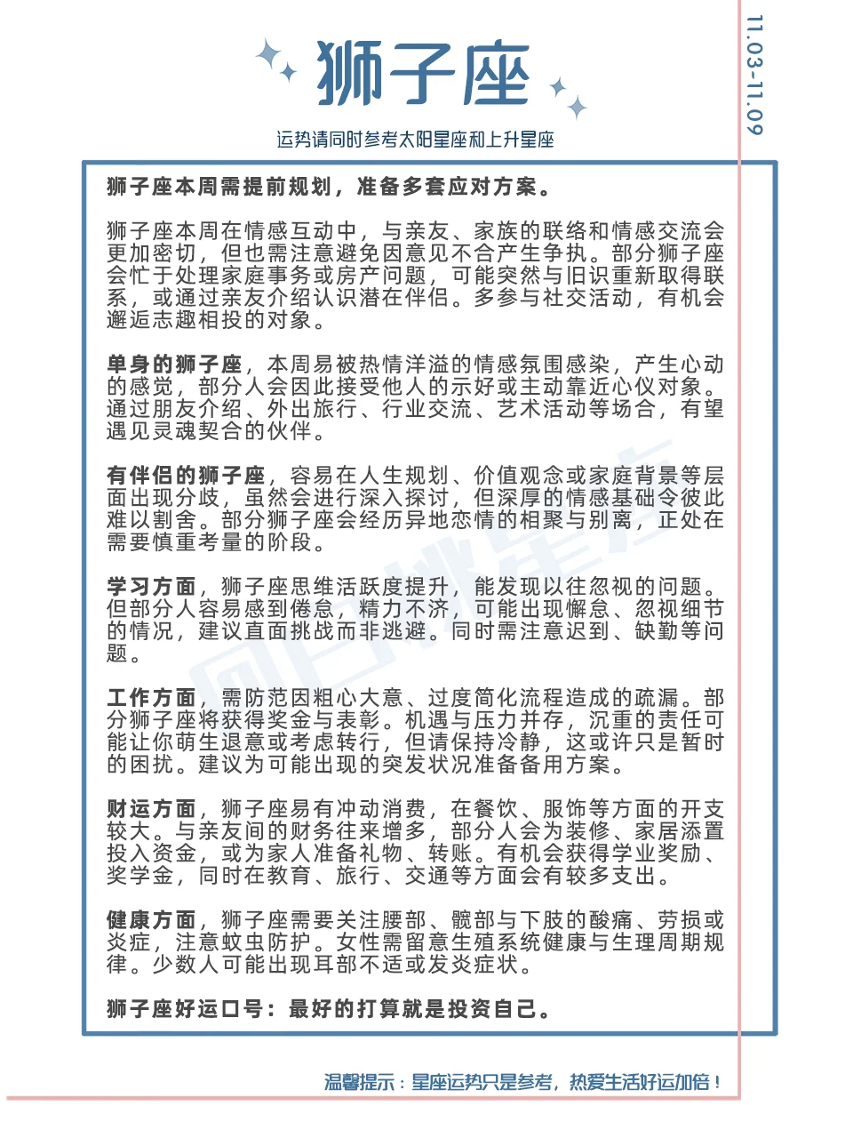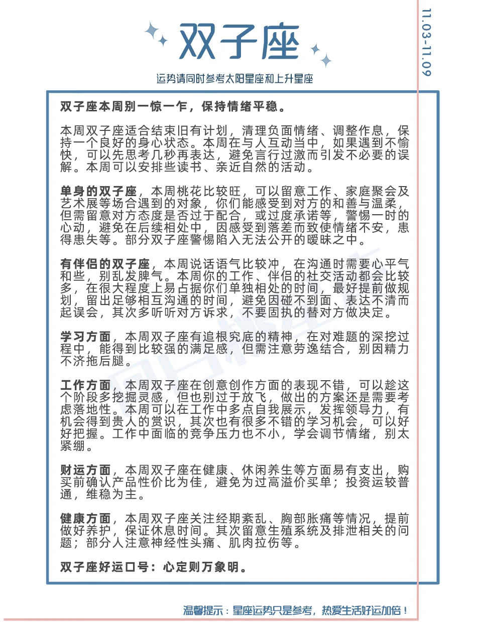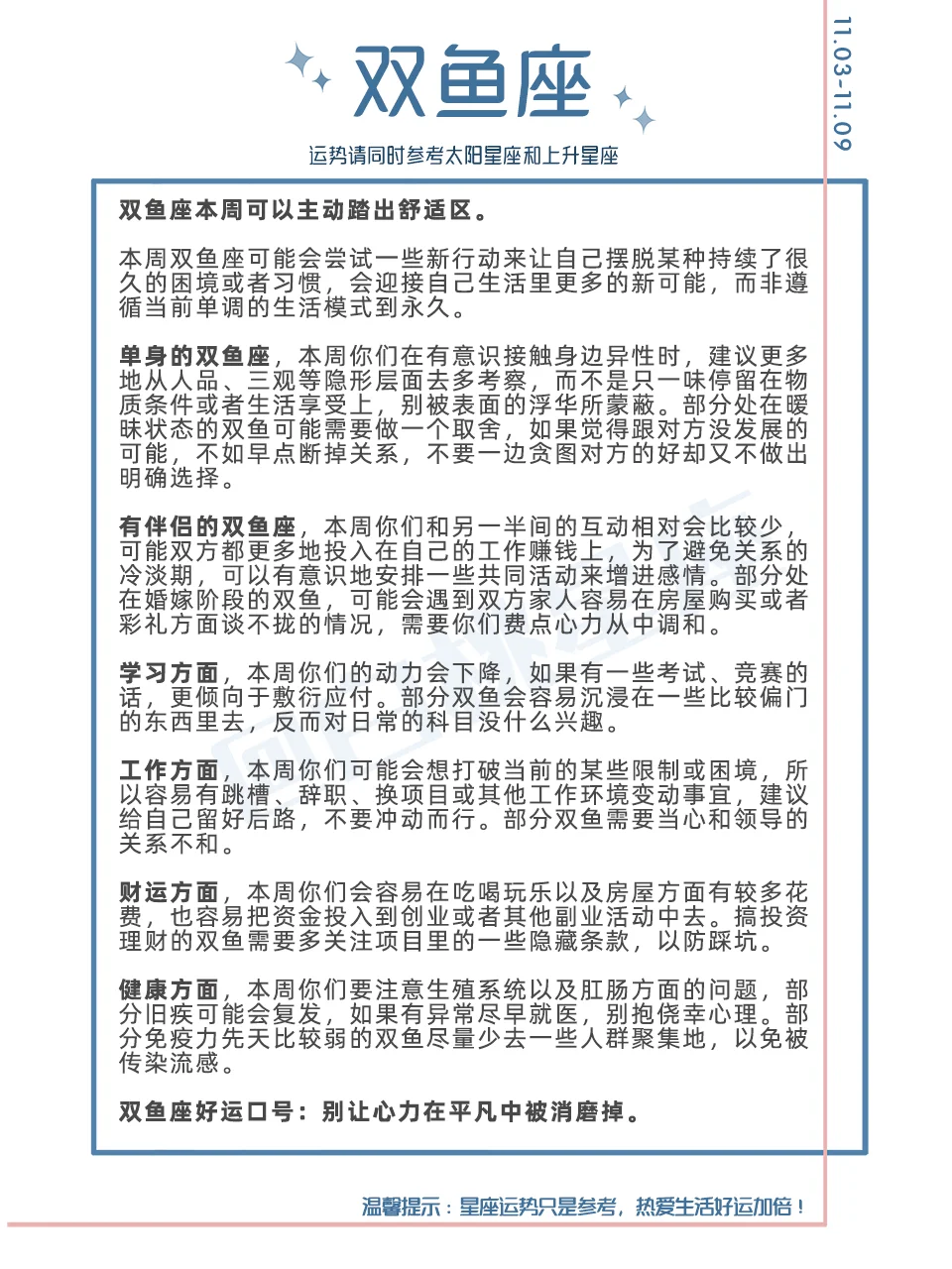 温馨提示:星座运势只是参考,热爱生活好运加倍! 星座 星座运势 十二星座