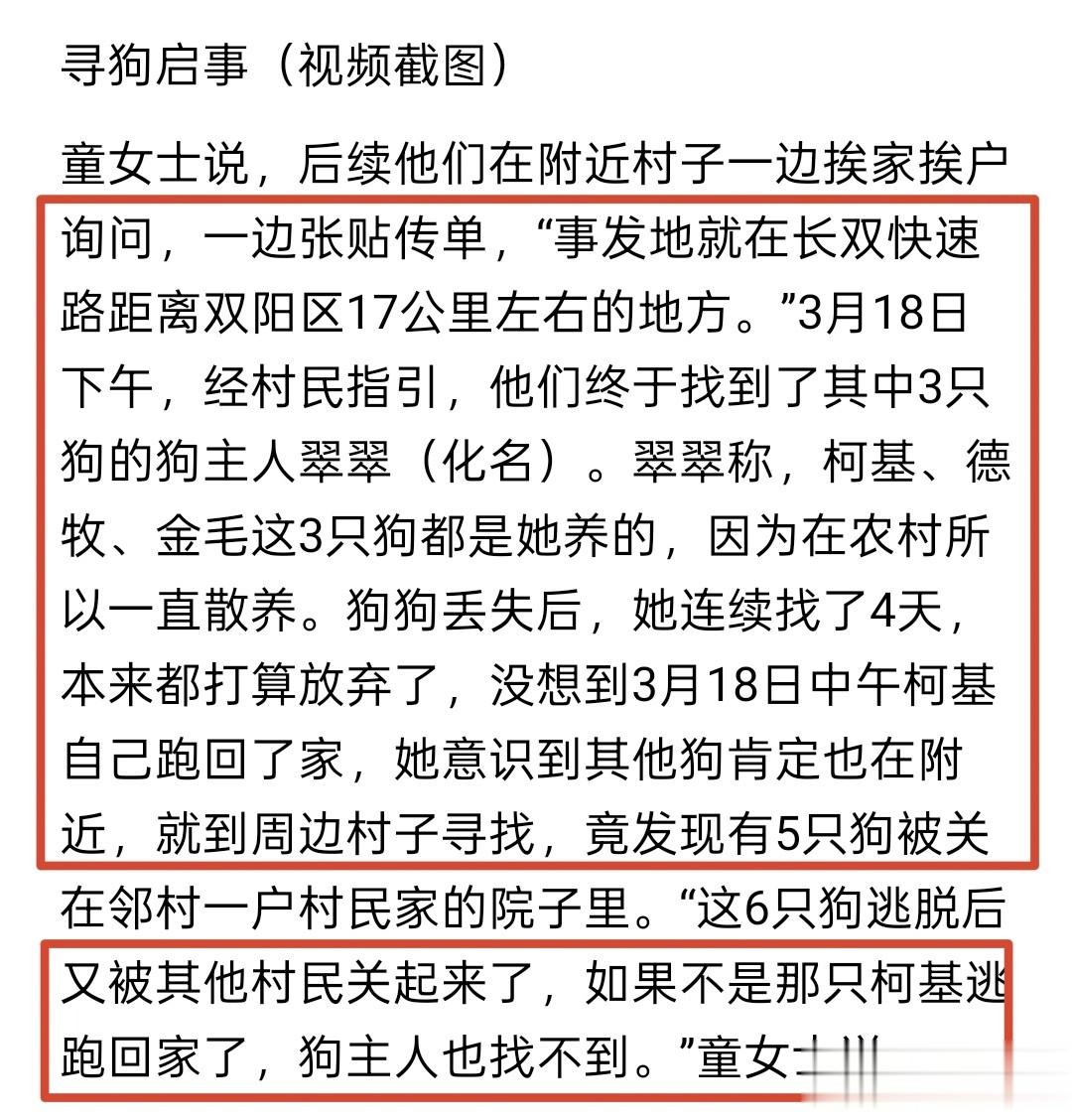 才发现,这几只狗逃出来后被邻村一户村民给关起来了,要不是柯基自己跑回家,那么,这几只狗还会被再卖一次。