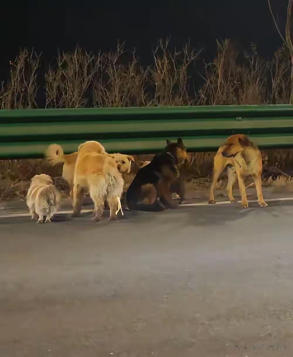 拍摄者称:“它们不像迷路,更像在逃命”,当时的车速很快,但狗狗们始终没散开,那种互相等着的默契,