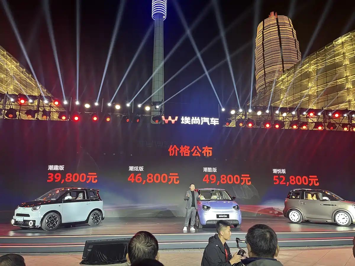 10月21日,埃尚A100C正式上市,新车共推出4款车型,售价区间为3.98-5.28万元,定位微型纯电动车。据悉,该品牌是柳州五菱与河南森源合作的品牌。新车的对手长安Lumin、零跑T03、五菱宏光MINI EV等车型。至于新车的表现如何,我们接着看下去。