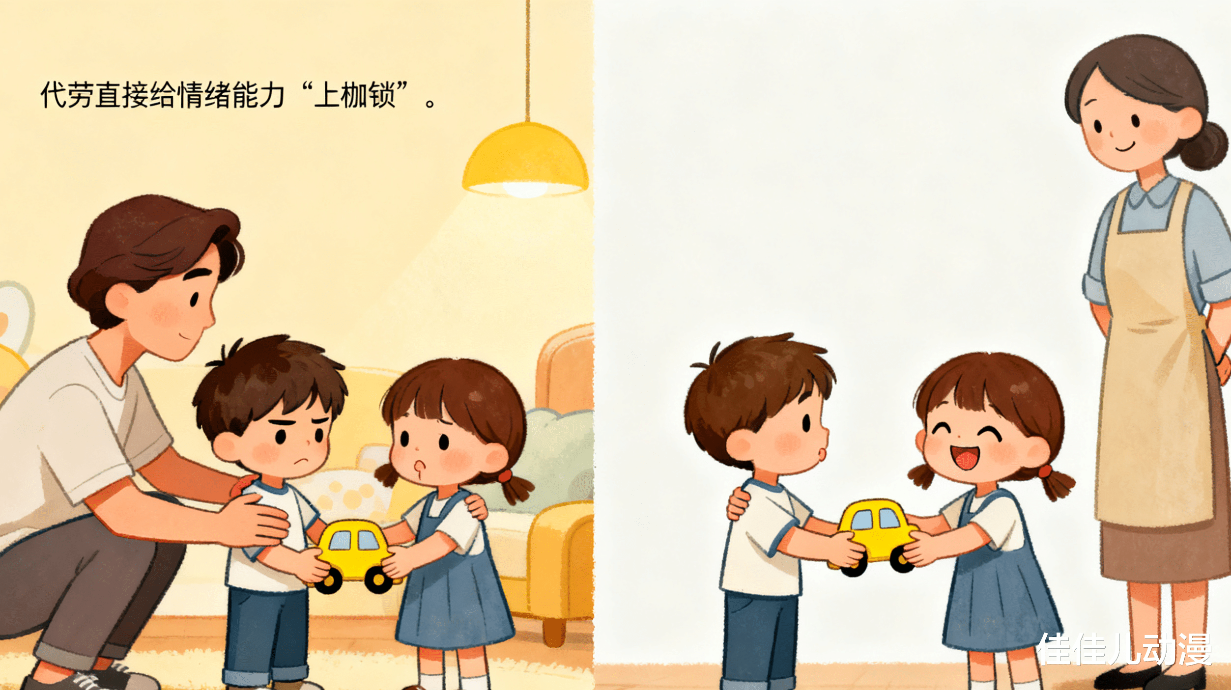 三、真相 3:代劳直接给情绪能力 “上枷锁”为啥有些娃一遇到事儿就找老师当 “救兵”?还不是家长平时把矛盾全承包了!老师恨不得娃能自己沟通解决问题,可过度保护直接让娃失去了共情和解决问题的机会,这不纯纯 “坑娃” 嘛!