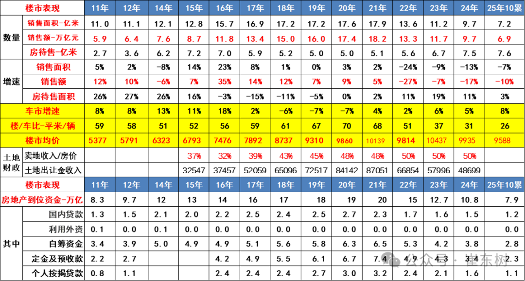 2025年1-10月商品房均价达到9588元/平方米,价格处于历史中高位。目前2025年10月商品房房价在9723元/平方米房,距峰值的2024年的10430元/平方米很小。地产的贷款大幅收缩,楼市投资主要靠居民的定金和预收款支撑,这对车市的购车资金带来一定分流影响。