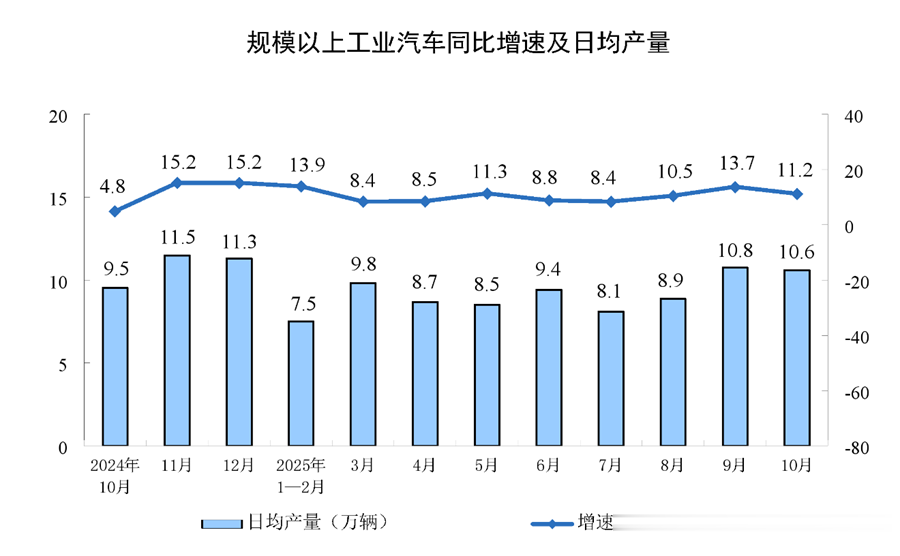分产品看,2025年10月份,汽车日均10.6万辆,增11.2%,考虑到2024年1-10月基数平稳,今年增速的表现较强。