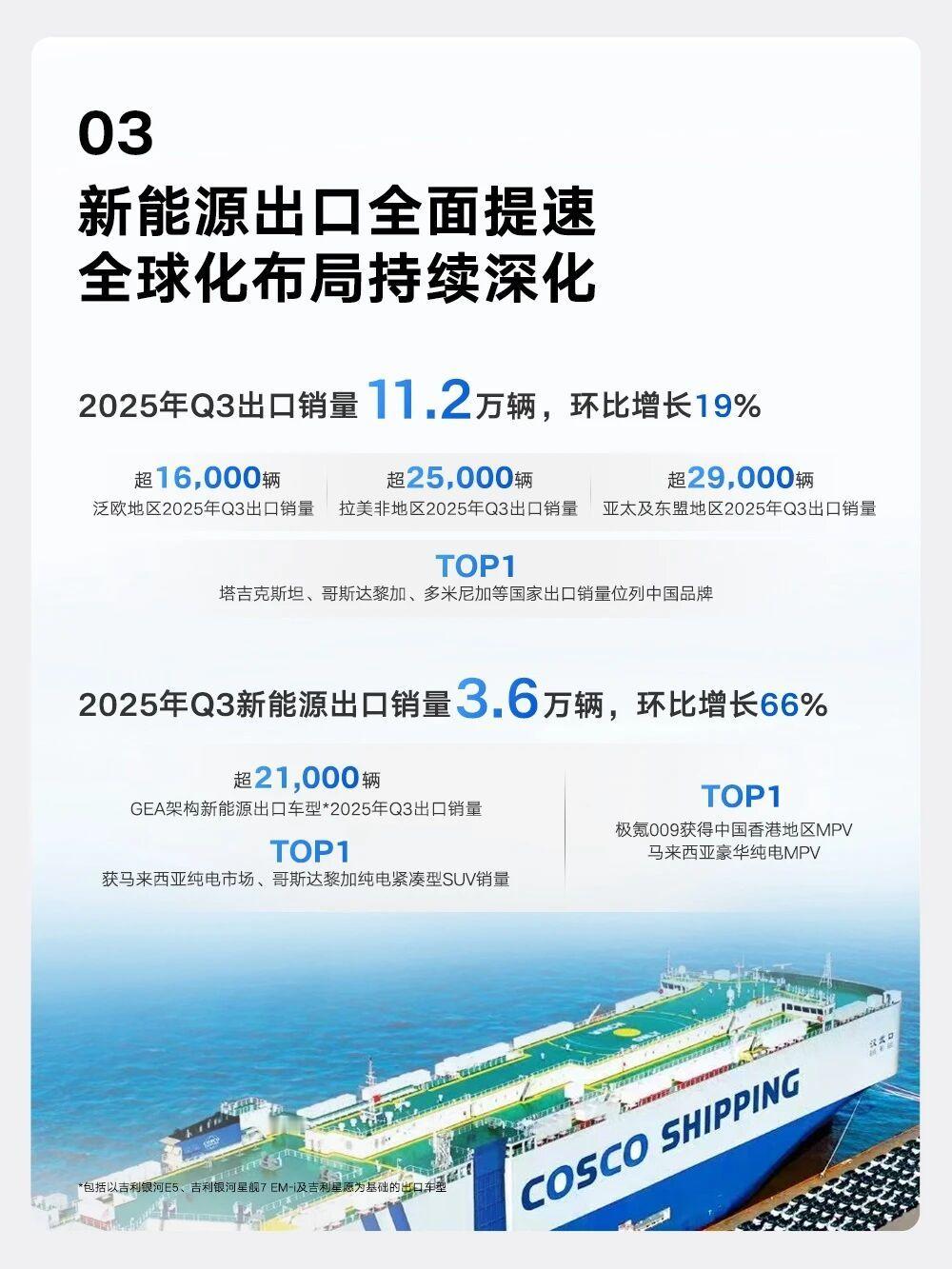 吉利汽车三季度财报销量、收入、利润、市占率全线上扬!2025年三季度营收892亿元创单季新高,同比增27%;核心归母净利润前三季累计106.2亿元,同比暴涨59%,市占率达10.2%。截至10月底年内销量247.7万辆,300万辆全年目标完成率82.6%