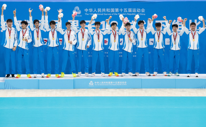 11月16日晚,全运会男排U18决赛在广州天河体育中心体育馆进行,浙江队最终以3-0(25-13,25-22,25-19)战胜江苏队,夺得冠军。
