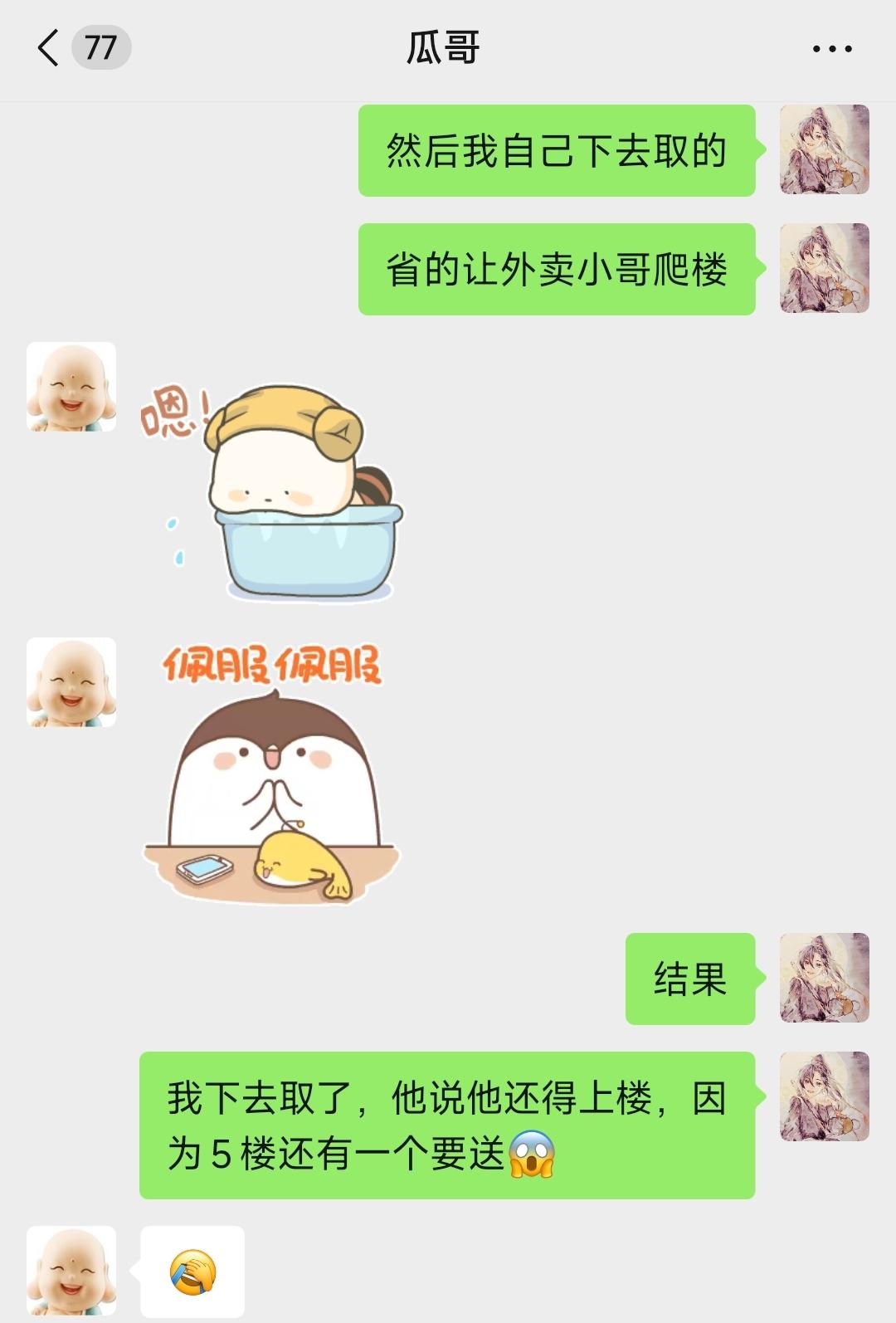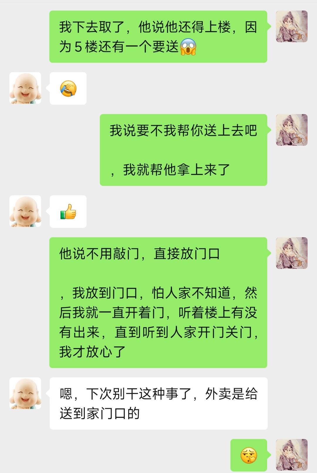 该不该帮外卖小哥把奶茶送上楼呢? 我很少点外卖,三年当中就给孩子点过两次奶茶。 这次孩子去学校后,我有个优惠券,这杯奶茶5块钱,外卖送到家,我就点了一杯。 我家在楼上,我想着让外卖小哥省点事,我自己下楼去取吧。 结果我取了之后,他说他还要上楼,因为在我家楼上还有一个,我说要不我帮你拿上去吧。 他就同意了。 他说放在人家门口就行。 我还担心人家看不到,我开着门,直到听到楼上开门拿了奶茶,我才放心了。 然后我跟老公说了,他说以后别干这种事了,外卖就是送到家门口的。 我本来是好心,想让外卖小哥省点力气,你们觉得应该自己去拿外卖吗? 该不该帮小哥把奶茶送上楼? 后来我想,万一人家没拿到,万一有什么差错,是不是会找我的事儿啊?